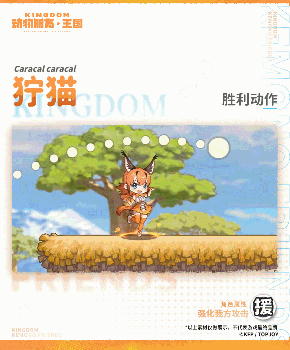 亲爱的浮莲子:今天为大家带来的是狞猫的实装展示哟~喜欢照顾朋友的狞猫,会在作战中,利用「飞天喵呜拳」来援助同伴,一起打败天蓝怪。”嘛、交给我就对了!“*以下素材仅做展示,不代表游戏最终品质。普通攻击:奇迹展示:胜利动作: