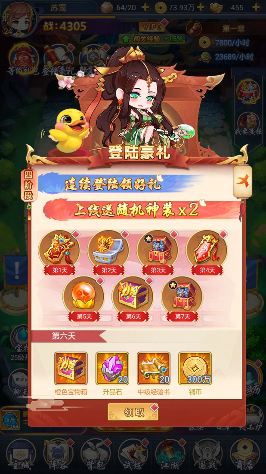 本次给各位小主带来的劲爆福利一共有两个! 【1】登录豪礼 游戏角色注册后,连续登陆七天便能领取相对应的福利,更有随机神装x2免费送! 《部落战联盟》中材料对于武将培养升级至关重要,七天的奖励累计起来可不少呢,各位小主记得领取呀,免费的福利千万不能错过! 【2】升级领豪礼 跟【登录豪礼】接连挨在一起的是我们的【升级领豪礼】,提升角色等级,级主页面左上角的等级即能免费领取福利呢,材料的重要性上文已经提