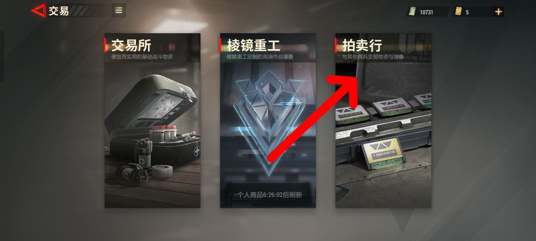 仓库是存放物品,切换物品的地方!可以完成其他活动增加仓库空间! 外观无非是一些衣服什么的! 交易里面的交易所是提供简单的物品,这种物品一般品级不是太高! 棱镜重工是卖武器配件的! 拍卖行是购买别人拍卖的东西! 安全屋的改装台是改装武器的,可以让武器变得更顺手,提升武器的精准度,开镜速度,后坐力大小等。如果没有武器配件可以去棱镜重工和交易所去看看,然后购买武器配件再去安全屋改造武器。 制造台根据原有