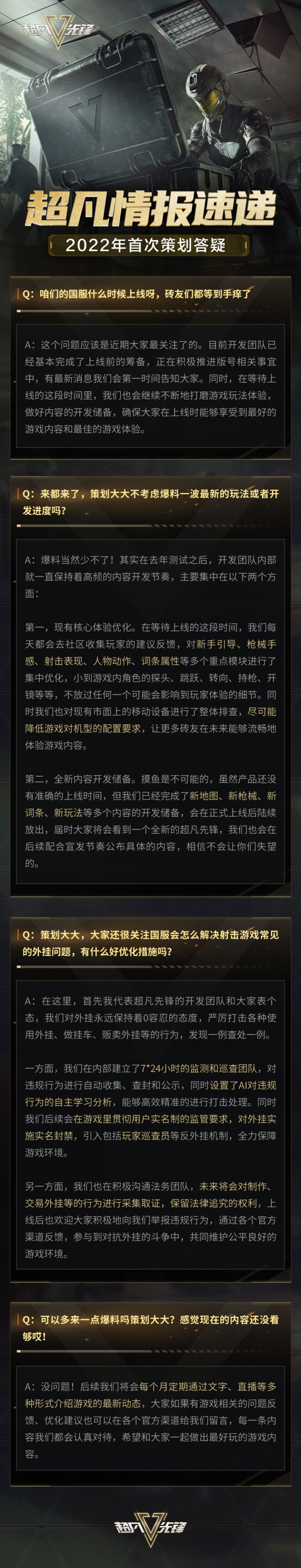在新的一年里,搬砖妹在后台收到了许多来自砖友们的留言“什么时候国服公测上线呀?”“策划搞快点,等不及了!”“爆点料呀,有没有新枪新地图?”……等等搬砖妹立马去喊来了开发团队的策划大大为大家整来一期超凡情报速递!砖友们,今天的策划答疑就到这里啦!你们还想知道什么?记得在评论区留言噢~公测预约火热进行中: