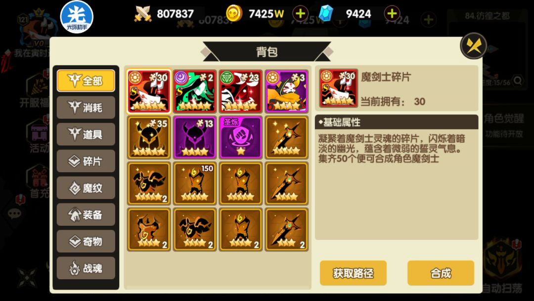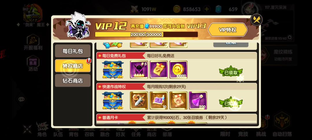 昨天帖子只是发了一个数据,并不全面,特意录了一个视频给想屯货的小伙伴一些建议与方向。爬塔留着活动爬,资源同理,地图资源也是,视频里的这些资源到时足够我有最少1000+的活动积分了,加上地图里面的商人物品,积分抽卡需要9850,我抽卡大概屯7000多些就够第九轮了,目前极限魔剑,虽说很多时候打不死别人,但非氪金大佬也打不死我,当然,越往后我肯定越咸鱼,但这是一个过程,依目前资源发展来说,出超S的时候我能直接用屯货期间的资源上彩星,到时肯定我也不强,因为我还需要弄装备升星,魔纹升星,但最重要的超S已经有了,试问,一个区有几个?
