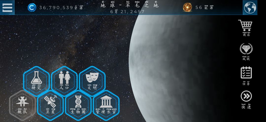 恭喜你,来到荒无人烟的不毛之地,怎么改造?怎么通关?还没明白?星球有被淹了?我会采用飞跃星球(也就是付费版)为您推荐一种通关思路 付费版亮点在于星球之间可以互相采集资源,利用这个特性在不同星球同时开采矿物来囤积大量货币。为什么要在不同星球开采?同一星球开采点会越来越贵,所以推荐去别的星球 囤积大量货币后,研究太空港,在南纬3度的地方建立一个基地(看着海拔建,不要建盆地、低洼里,避免被水淹)#攻略