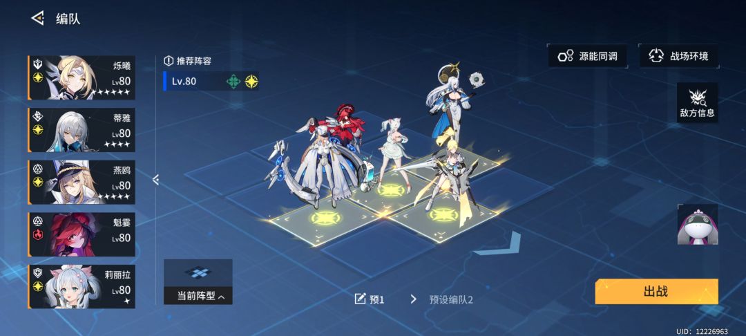 首先,这游戏pvp目前因为卡池太少,非常无脑,且奖励差距很低,不是重点需要研究的地方。国家队,除光盾,所有人速度越快越好,艾可一速(怒涛套),燕殴(二速攻击套),冷蛟(三速冰冻套),言(勇士套),光盾(后排肉就完事了),这套阵容就看谁先手,非常无脑,且无法反制。 攻坚六个图,通用阵容如下。其中火盾和绿盾必须六星(非常容易实现)。 需要注意的点,绿盾速度比输出快一点,第一个图需要比输出先开盾,绿盾主
