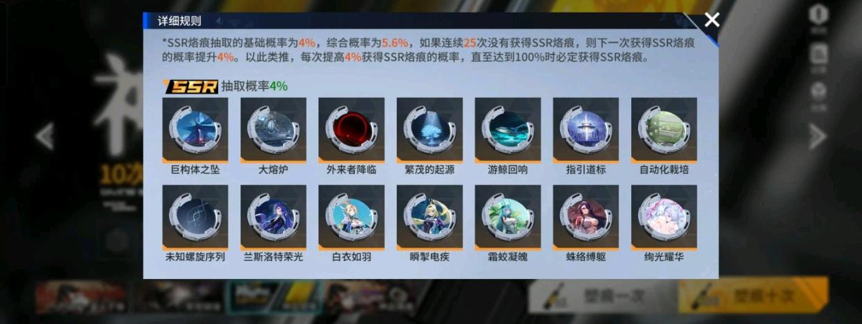 邮件发了30抽常驻烙痕,新玩家们舒服了啊。 以及烙痕(武器)池加了很大常驻角色的专武,抬了下首充雷辅,6元首充雷+新手雷+火sr自选(忘了叫啥等会找下,一技能加12%暴击率那个)+火r返还养成的坦克+奶sr(15级等级礼包),开荒问题不大。 up池是火系对群大输出,在专武的加持下不弱于言,6命更是以后可以适配任何队伍。 (这游戏可以每日刷碎片满星+ 满星r卡出一个给15币,1-5币换1碎片#游戏种草计划
