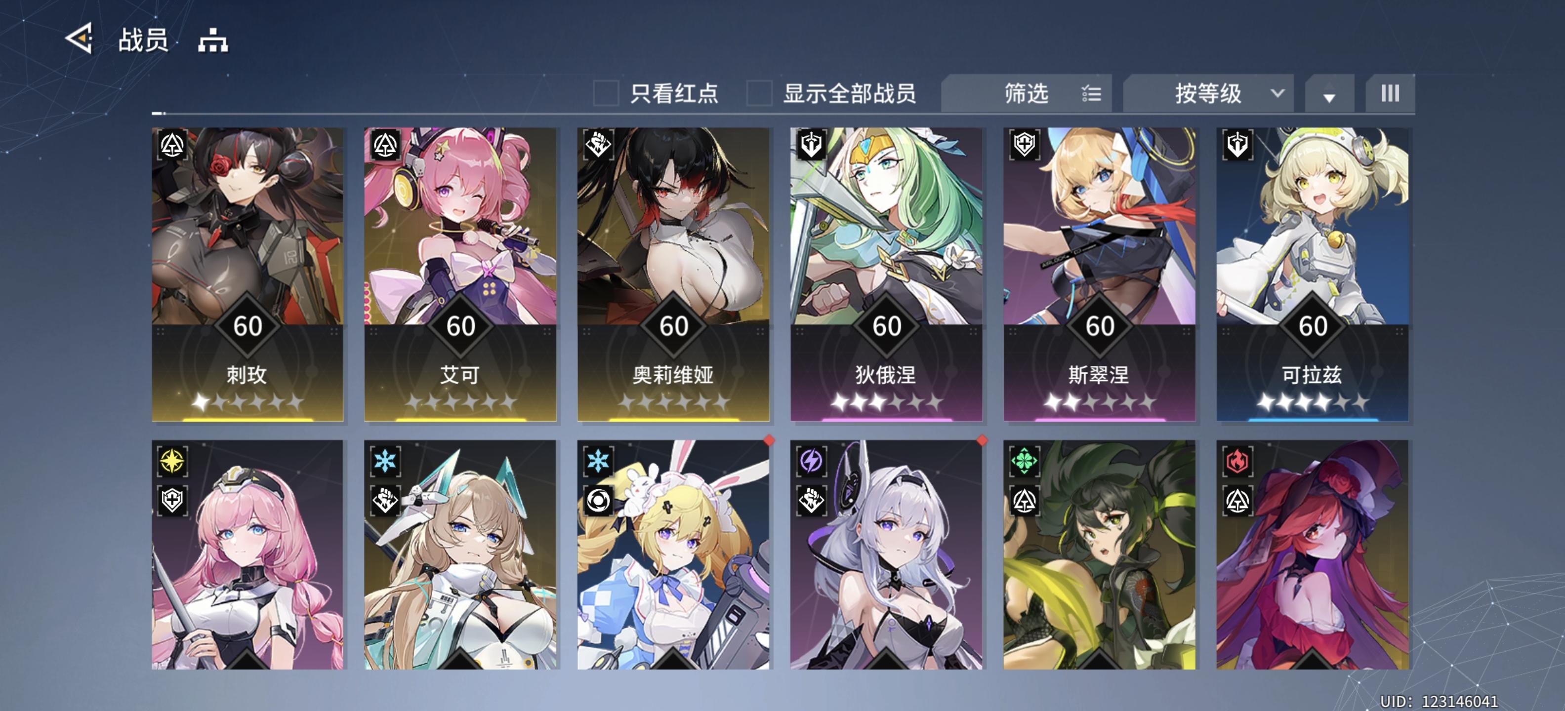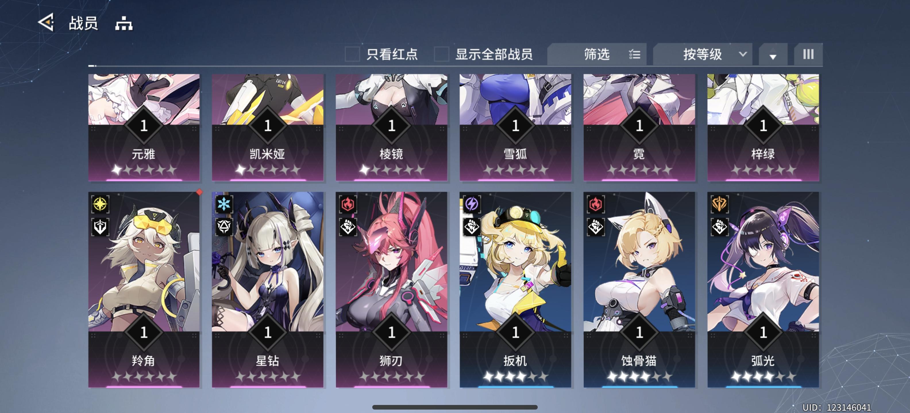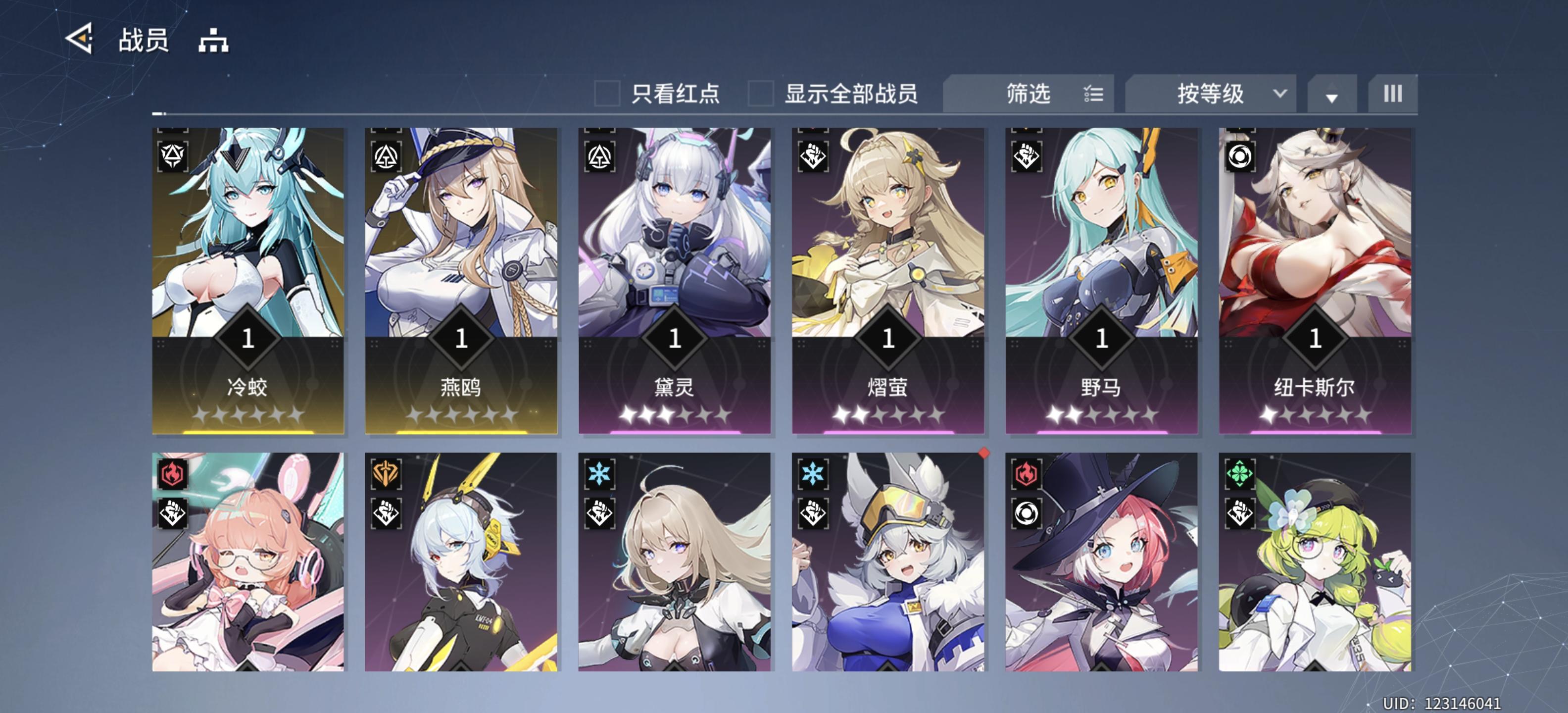 新人第3天,橙色人物一个没敢升,不知道啥人物搭配好一些。