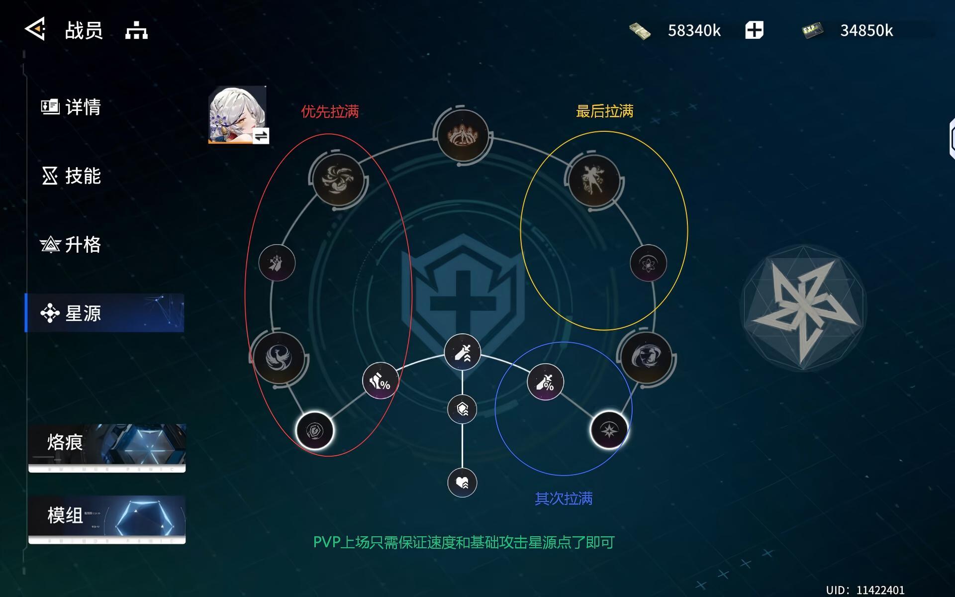 核心机制解读:1. 瑶光(核心buff)· 获取方式: 每回合开始按场上友方角色数获得(最多叠加40层),专武开局给25层,队友放源能技时概率获得,武器满精是质变,100%获得。· 核心效果: 每层永久提升自身1%减伤和2%治疗加成(上限40%减伤、80%治疗加成)。· 团队增益: 当瑶光达到 5层、15层、30层 时,分别永久为全队提供 护盾增强、减伤、攻击提升 效果,同属性队员获得额外