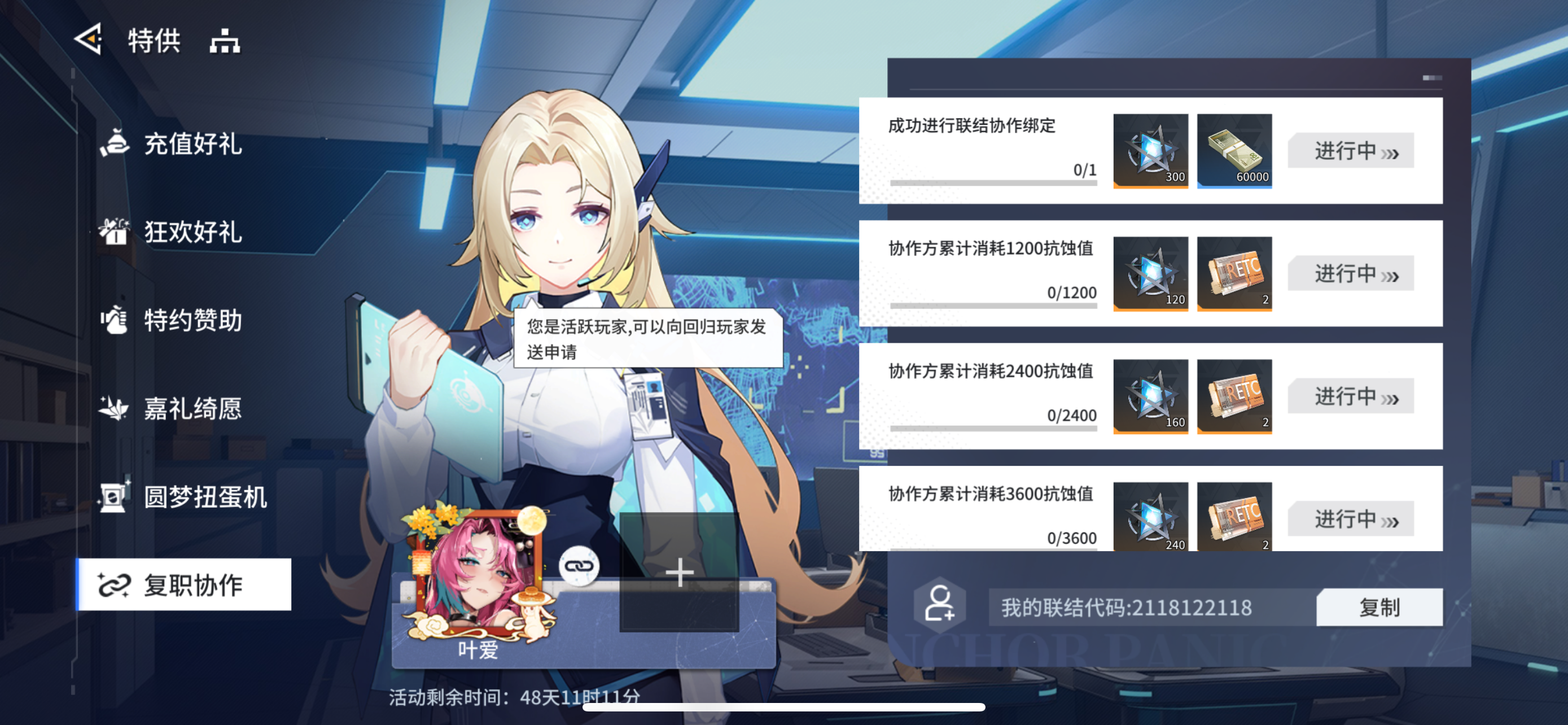 嘿,链尉官,新版本预约已上线~~赶紧动动小手约起来~~周边就是你的咯!▼如何预约▼方式1:方式2:在TapTap中搜索“锚点降临”,点击下方的图片即可进入“预约新版本”界面。▼预约抽奖▼在本帖评论区回复并分享“预约截图”的链尉官,我们将随机抽取2位幸运链尉官,各送上《锚点降临》精美镭射卡1套(共4个,泠/伊芙特/红叶/克里安卡)。活动结束后,我们将在7天日内公布抽奖结果,敬请期待~【活