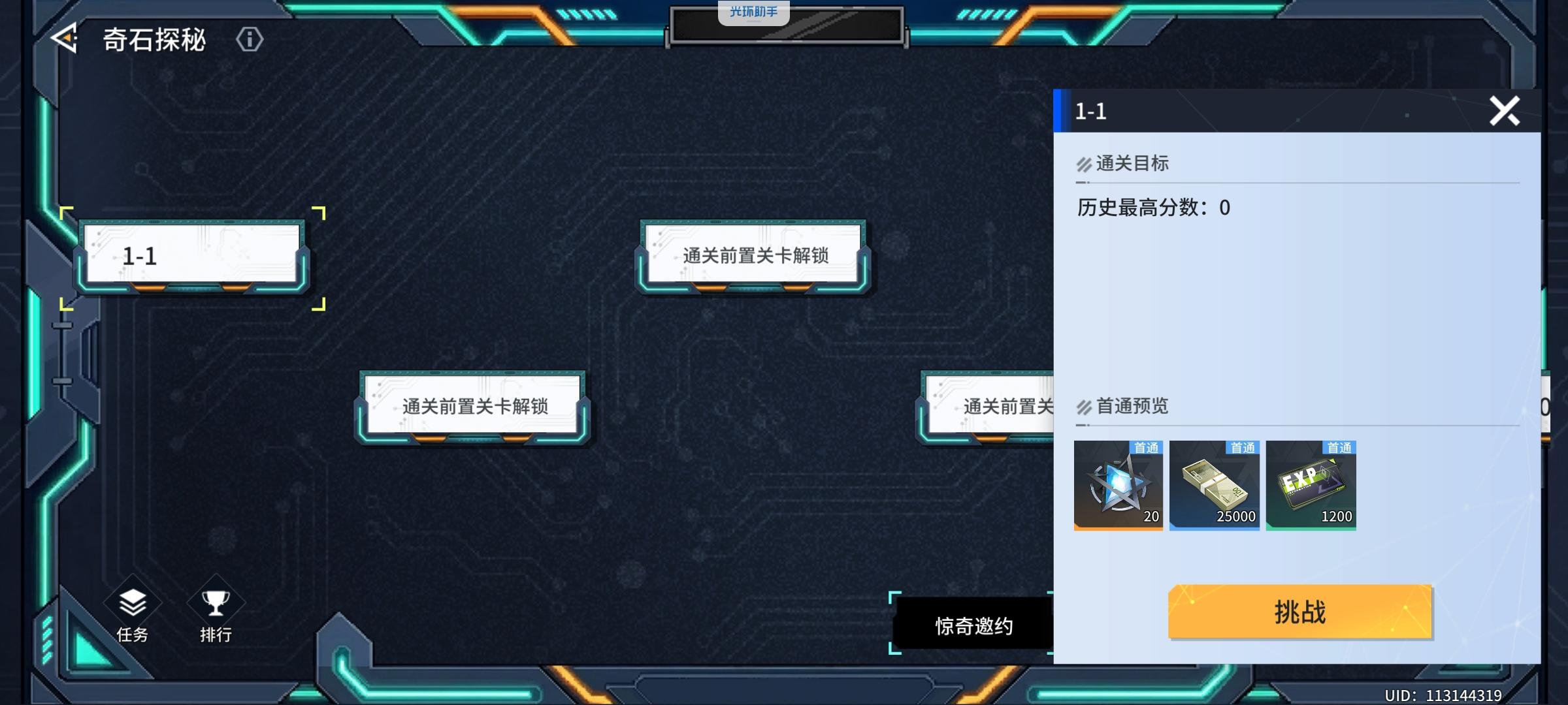 是卡住了,还是现在没开啊?搞1万多分不会第一关过不去吧?