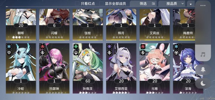 这期熵焓凹分发现的新阵容一速同调怒涛磐雷(刚需觉醒) 锁2二速伊芙特专森罗艾可(最好能觉醒) 锁1不开大三速繁茂/霜琼专森罗鸣晔 锁1四速专武雳闪卡兰(刚需觉醒) 锁1 1回合不开大五速专武三攻2+2+2泠(刚需觉醒) 锁1该阵容怎么说呢,适合出个差不多的分混下前排又不想太凹的,因为卡了第2356回合4只小怪,相比用戴灵出分稳定。凹了几个小时吧,30亿以上的分出了10多次,后面都懒得截