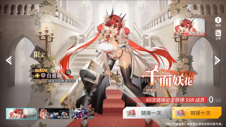 各位链尉官:我们计划于2月10日推出链接UP池轮替更新补丁包,详细内容如下:▼战员链接UP池轮替▼★UP链接·千面妖花★「限定·白蔷薇」UP链接,链接概率提升!链接说明:1. 开放时间:2月10日更新完成后-3月10日05:00;2.「千面妖花」链接卡池开启!UP 战员「限定·白蔷薇」链接概率提升,累计180 次链接必出「限定·白蔷薇」。★UP链接·光与影的彼岸★「周年限定·霆渊