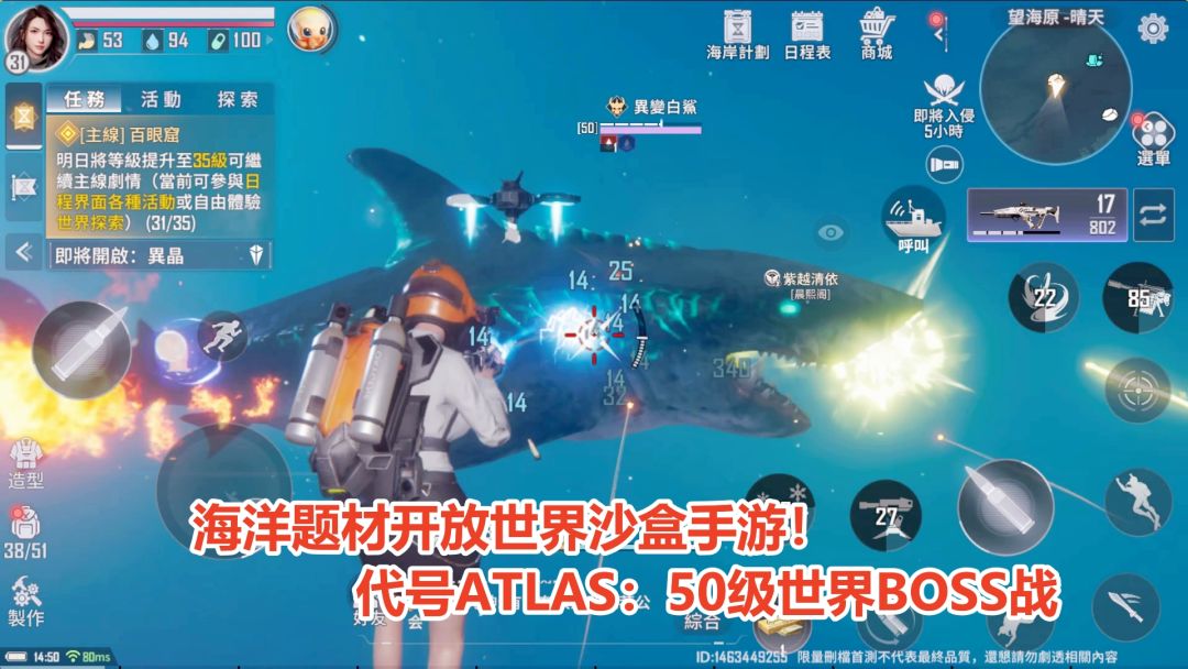 网易最新开放世界沙盒手游!代号atlas50级世界boss战,异变白鲨