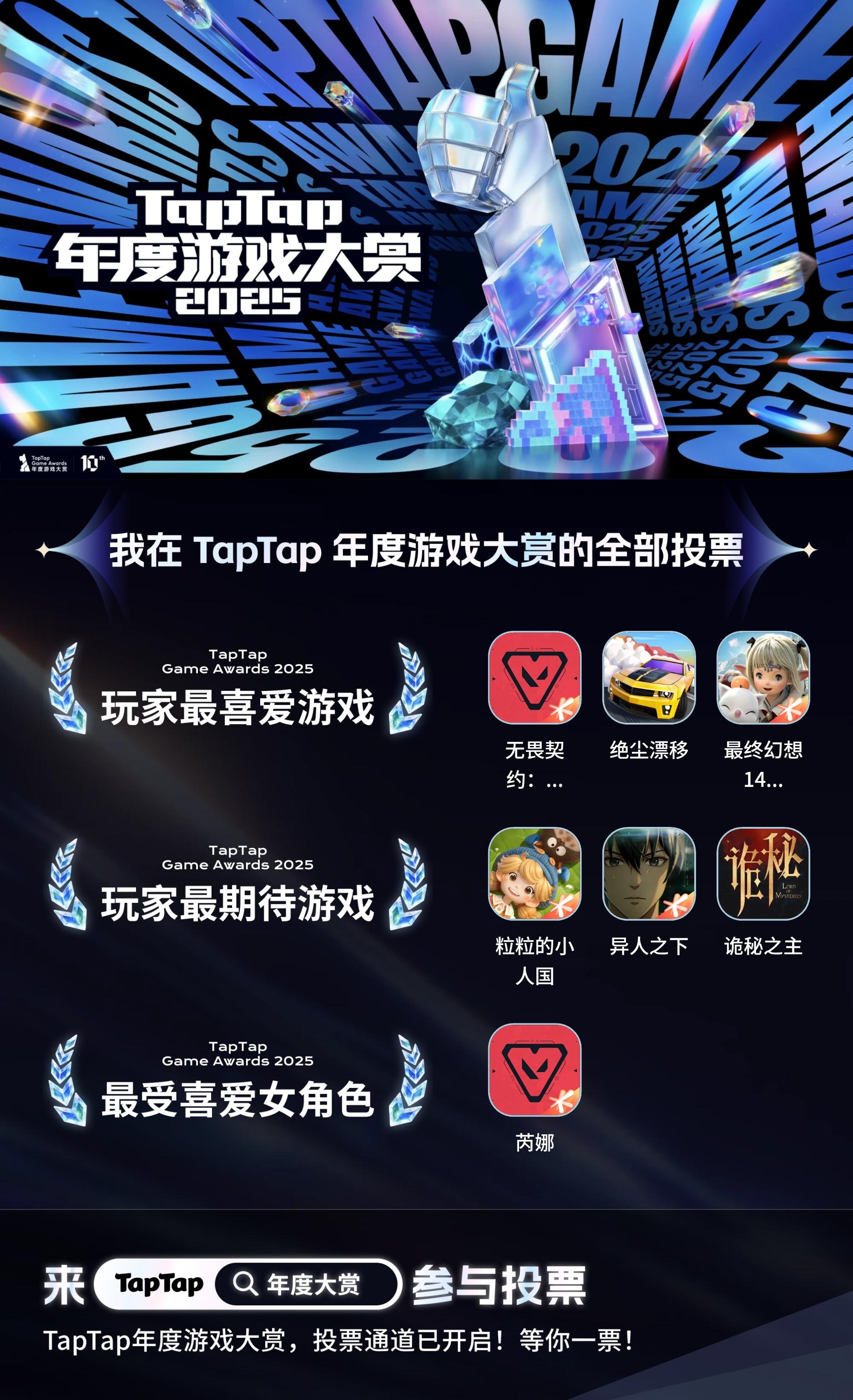 TapTap十周年!年度游戏大赏投票今天开整!