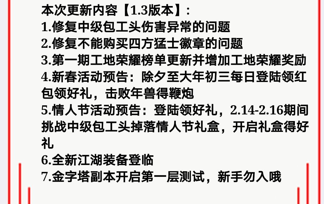 更新公告如下 更多内容请来游戏内查看吧~