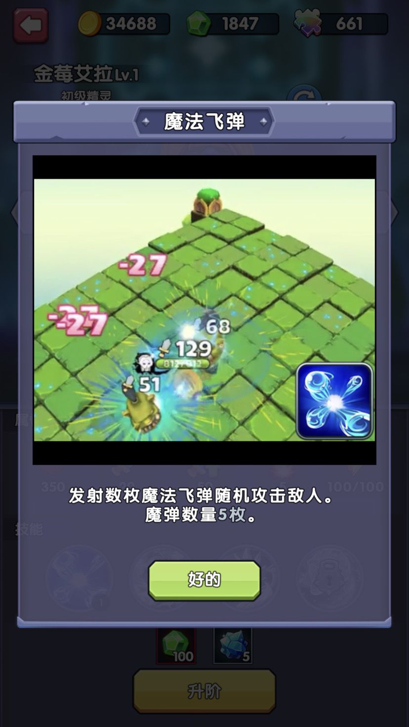 精灵的战斗力和她的形象可以说是天壤之别,楚楚可人的外表下藏着暴力的内在美,她的进化材料相比骑士要难以获取一些。 第一技能为魔法飞弹,这个技能会根据敌人与自己距离进行锁定,并无条件命中,每一发飞弹的攻击力虽然不高,但是在3级魔法飞弹9发的数量优势下,竟然可以造成对敌人将近300%的伤害效果,除了暴力,实在没法用其他语言形容。 第二技能为自然之力,这个技能是会根据角色当前的战力为自己恢复一定的生命力,