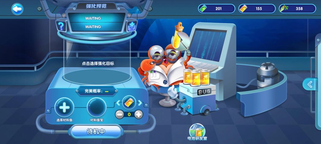 电池获得在科研所,电池研发室不要停,前期可能鱼宝不够用,但是尽量弄,后期电池很缺,强化可以增加观赏度,黄金电池最好给双子处女这种,黄金电池只能氪或者活动获得,3s强化五星完美可以觉醒。id1084601#萌鱼泡泡