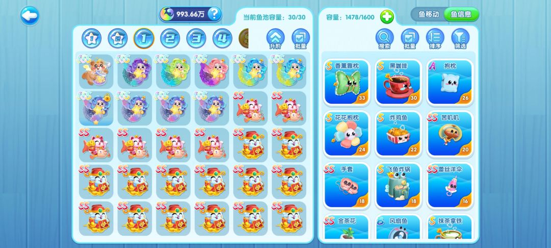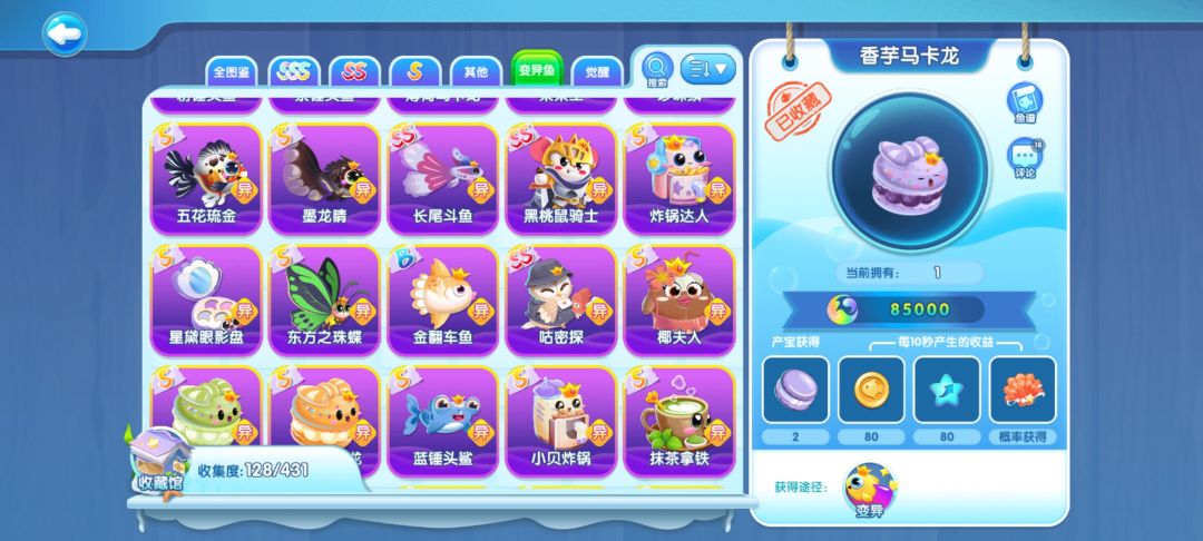 建议先把需要变异的鱼养成成年状态,然后等变异周一次性变异,然后评级建议多弄点小丑鱼,等强化周,一次性强化60只满星,那全奖励