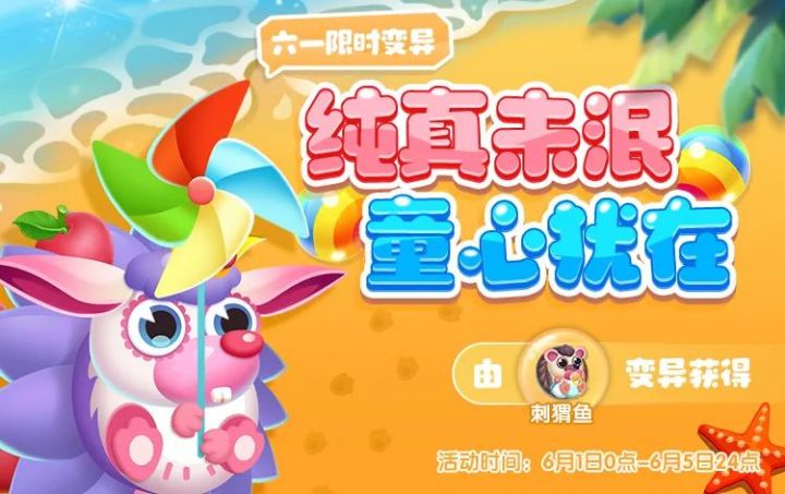 和夏天一起到来的,除了蝉鸣、西瓜、冰棒、空调...当然还有孩子们都期待的六一儿童节啦!大小朋友们都要可爱过节,萌鱼小镇六一活动已开启快来参与吧!刺猬鱼六一限时变异旋风小猬(s级)由刺猬鱼变异获得限时变异时间:6月1日0点—6月5日24点在这童趣十足的节日里,也迎来超萌的变异新鱼,由刺猬鱼变异的旋风小猬手举彩色风车可爱登场。泡泡对于可爱的萌鱼没有一点抵抗力,不知道馆长们是否也一样呢?(●'◡