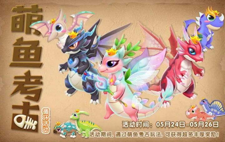馆长们好呀!泡泡照例带着新公告来和大家见面咯!本次活动又将有什么惊喜等待探索呢?请接着往下看啦!活动时间:5月24日0点至5月26日24点具体活动时间以游戏更新为准首先当然是先揭晓馆长们最期待的大BOSS鱼啦!活动中当集齐考古子鱼,即能得超稀有SSS级鱼-赤焰,拥有火属性赤焰神龙会有怎样不同?快把期待值拉满,见证赤焰的魅力时刻!赤焰(SSS级)生生不息的炽热火焰还变异出骑士“泷”与公主“