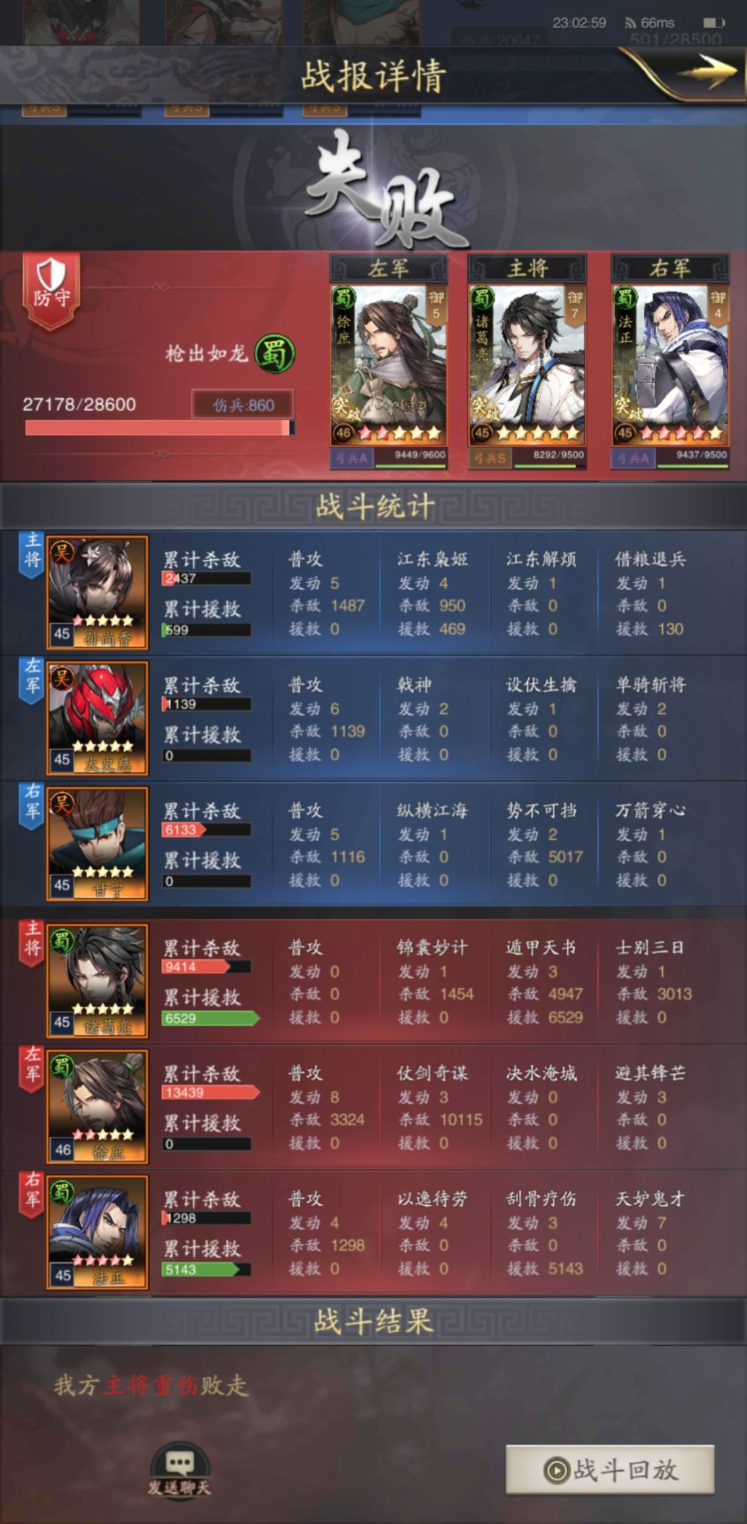 系统:安卓 区服:荣耀服 挫其锐气 游戏ID:122CE33955F 游戏名:狮子头零充 今天给大家带来一队爆发队。那就是赤壁诸葛月英黄忠。也许也有人组过这套阵容,但我这套技能是我以自己打架经验组成的。首先这是技能配置。 这队输出主要靠的是黄忠主技能的会心爆发,机变让黄忠开局爆发伤害提高30%让其更容易开局秒一人,破阵减对面统率智力。(也可以换成万箭、横扫我都试过不过伤害不能最大化)。月英带刮骨防