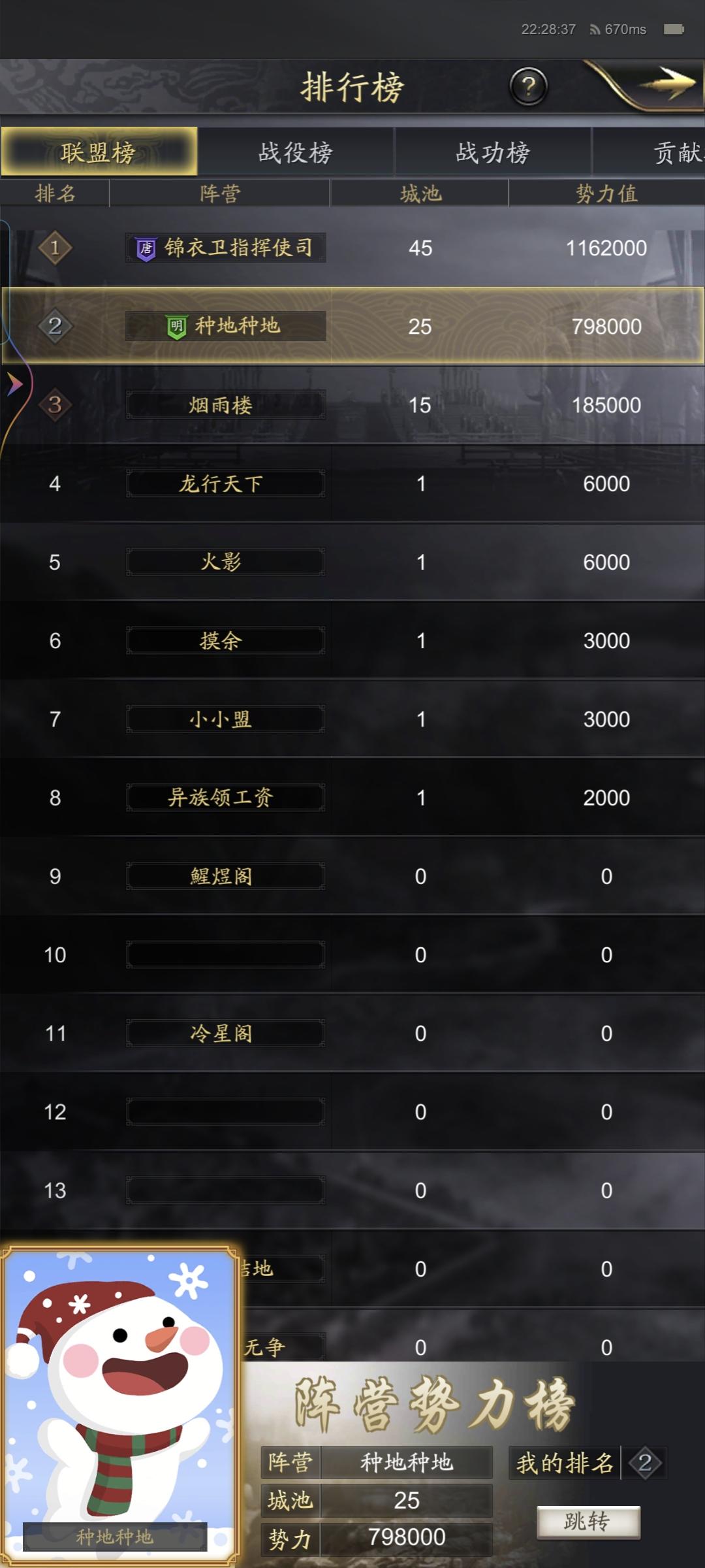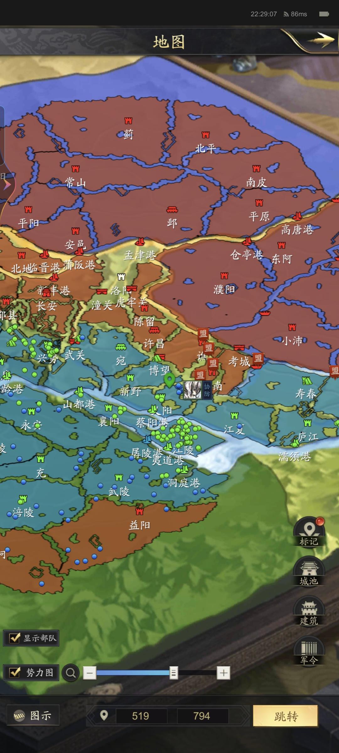 这几天大家还是在汝南下面刷战功,互相驱逐玩。昨天开始开了内关,总算可以打些沃土了,势力从8.4万涨到了10.4万,日子总算好过些了。不过上赛季势力14万多,那是没法比,队伍现在也发育到9队主力了,出去就是大部队了。今晚打完散关,势力资源就到头了,剩下的就是不停刷战功。战略游戏也就是开荒、到处打架累,只刷战功其实最轻松。下面嗮下联盟势力及局势图。