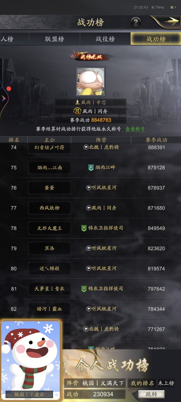 六雄争霸53区战功排名更新-凌云小记