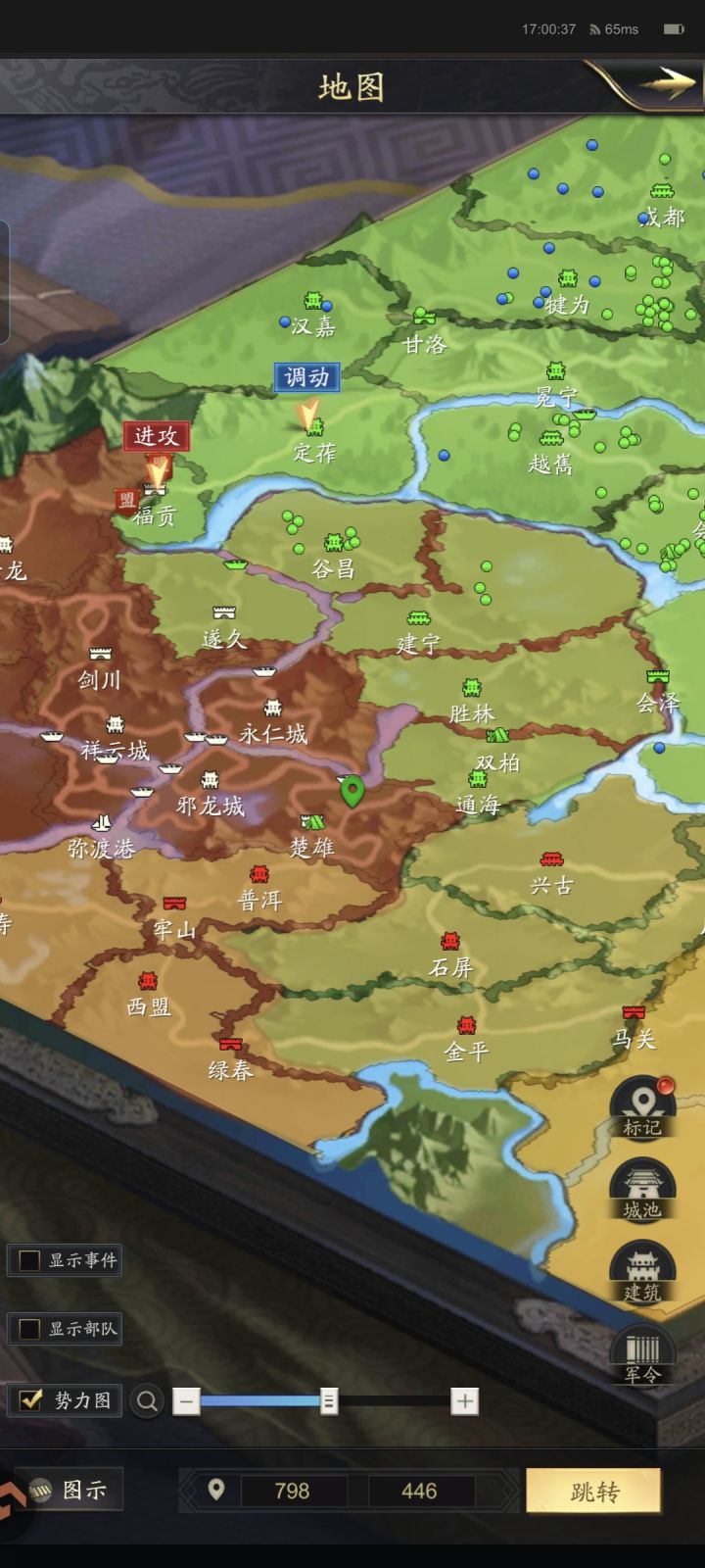 跟大家分享下出关的战况:2.2日11点,桃园从东兰渡开关,一路经渡口向汉阳铺路,主力向渡口远射,器械准备打汉阳。对面菜菜小店人多,铺路速度很快,优先抢占了朱提左边渡口,然后向汉阳进攻。桃园向前铺路协防了渡口上面第2个驿站,但是没守住。菜菜小店迁了6个城左右,桃园的人少拆汉阳城皮后,小队体力不足,铺路较慢。后在汉阳、会泽、渡口三方交汇驿站处开始迁城,迁城后桃园建了军营基地局势基本上稳定了下来,桃园