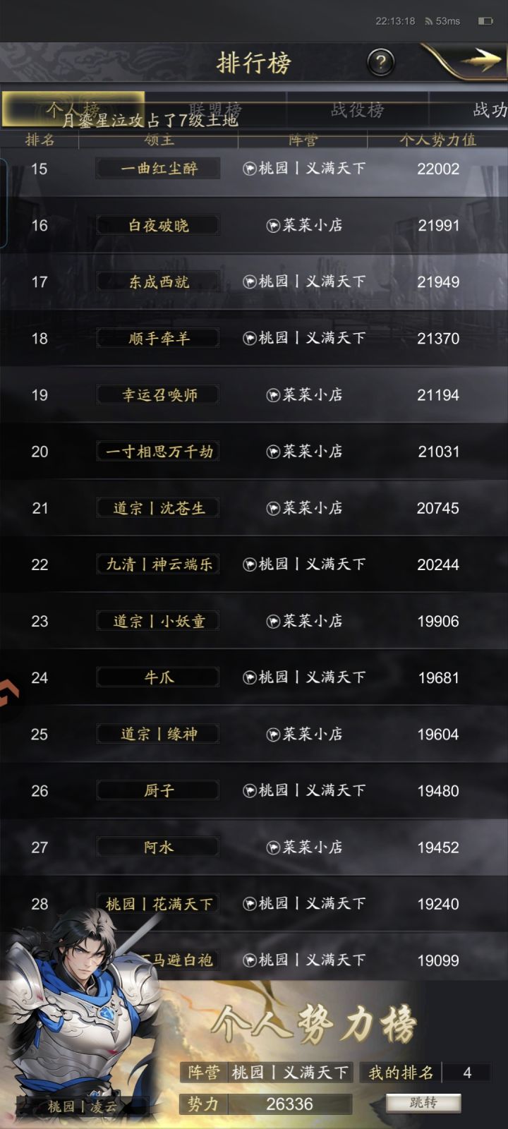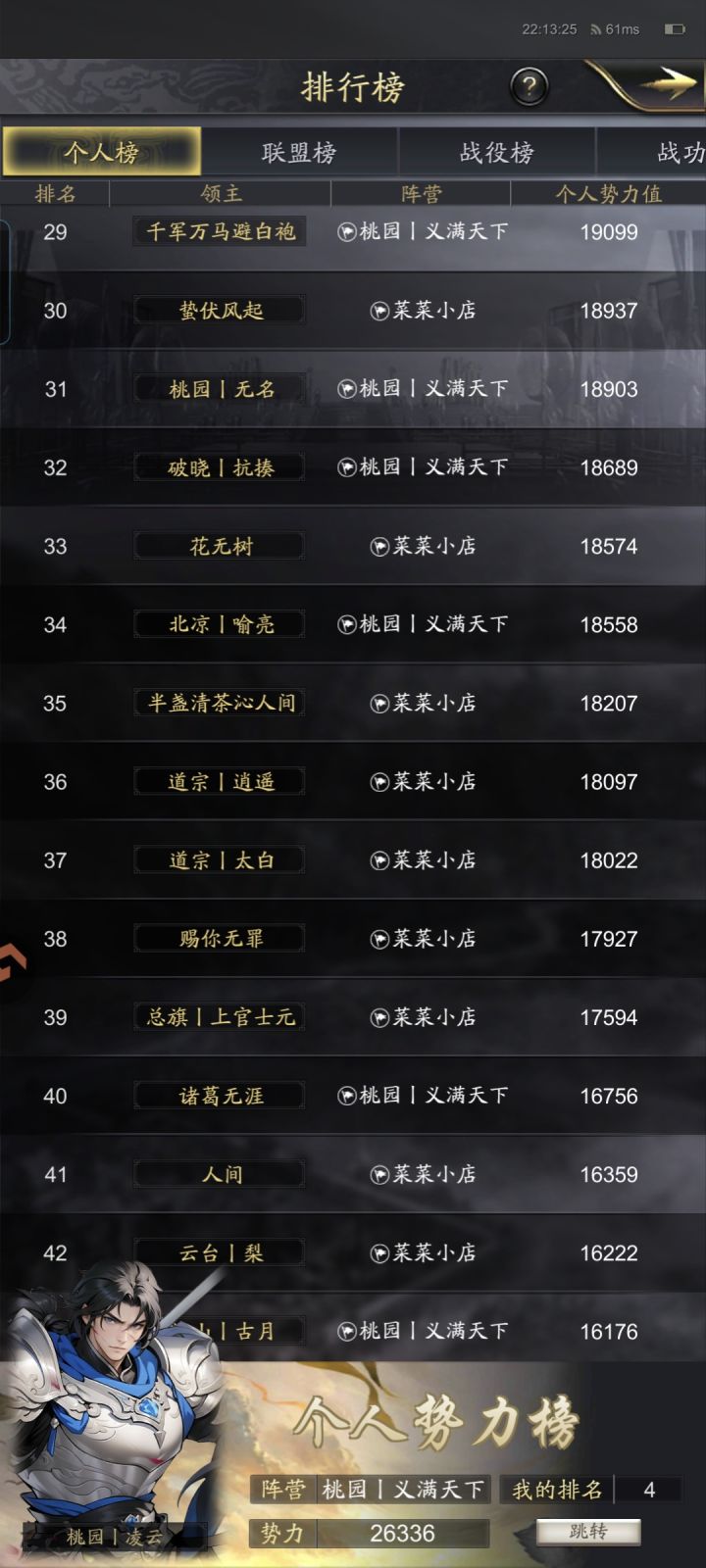 开服第三天,晒下势力排名。郊区确实轻松点,目前还不到3万势力,要是一区早超3.5万了。