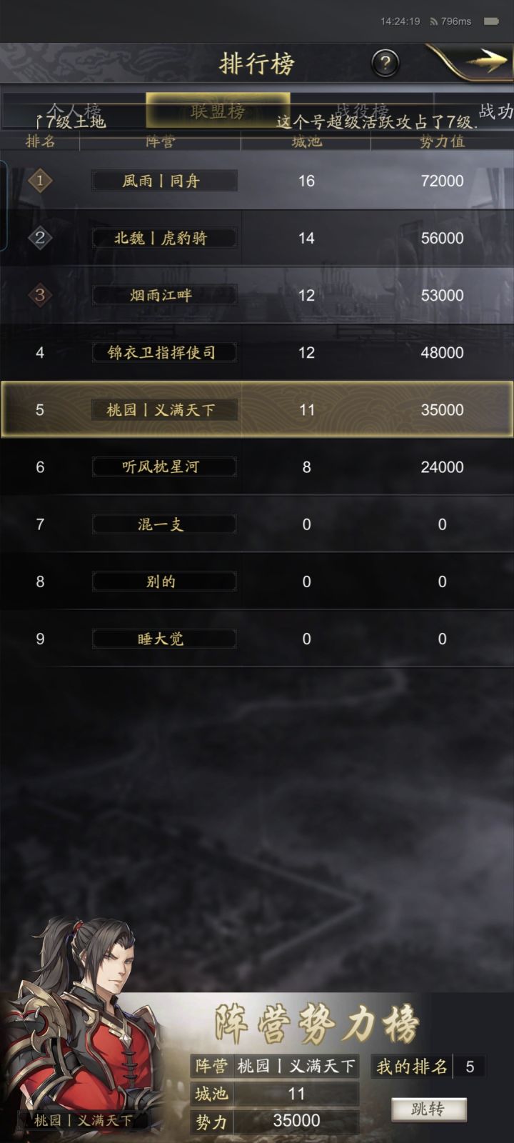 目前遇到的最郊区!对面势力值9千以上的只有9人!势力值300就能上榜前60 全方位碾压 一个大佬就能穿他们一个盟了