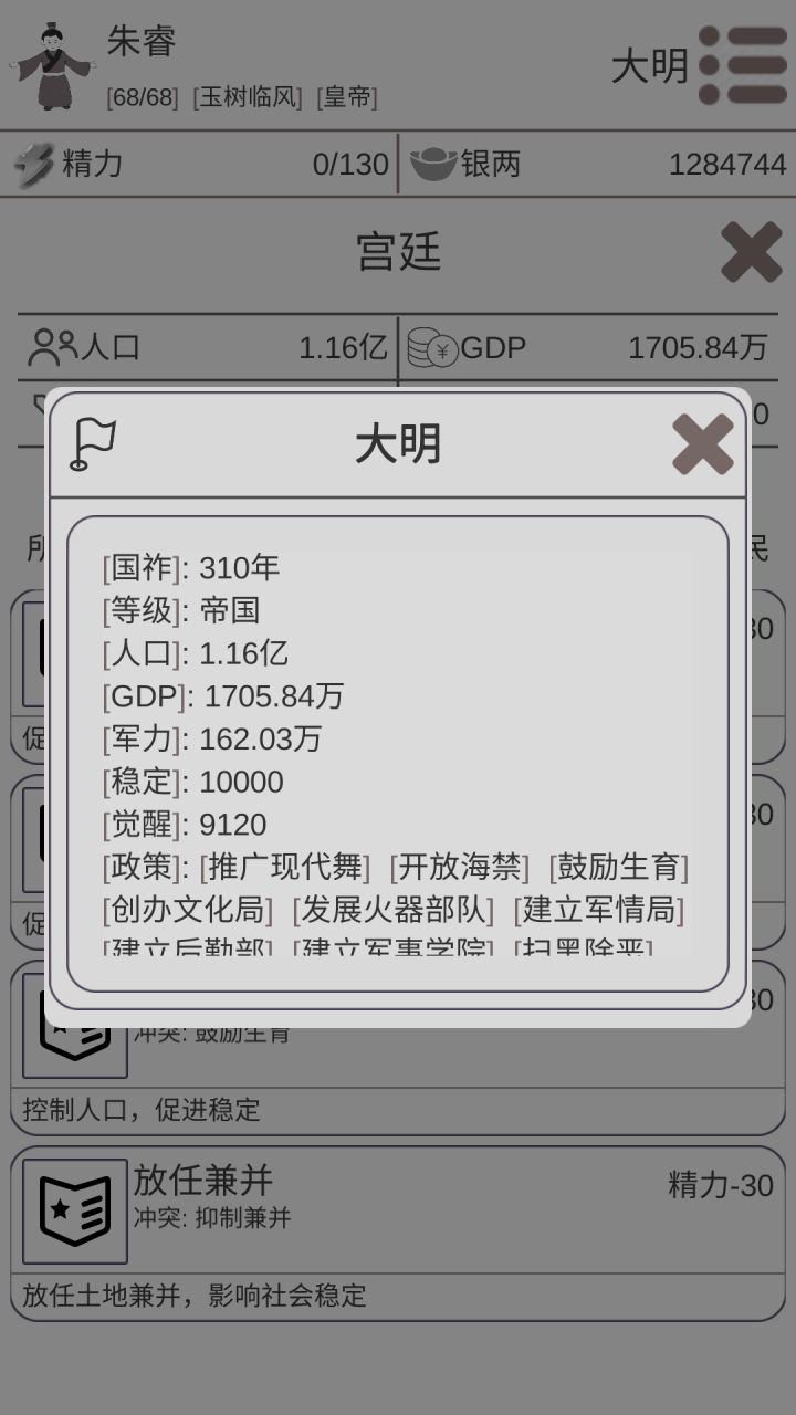 玩过最好的一局是造反!政策全点后灭了五个国家老死了!