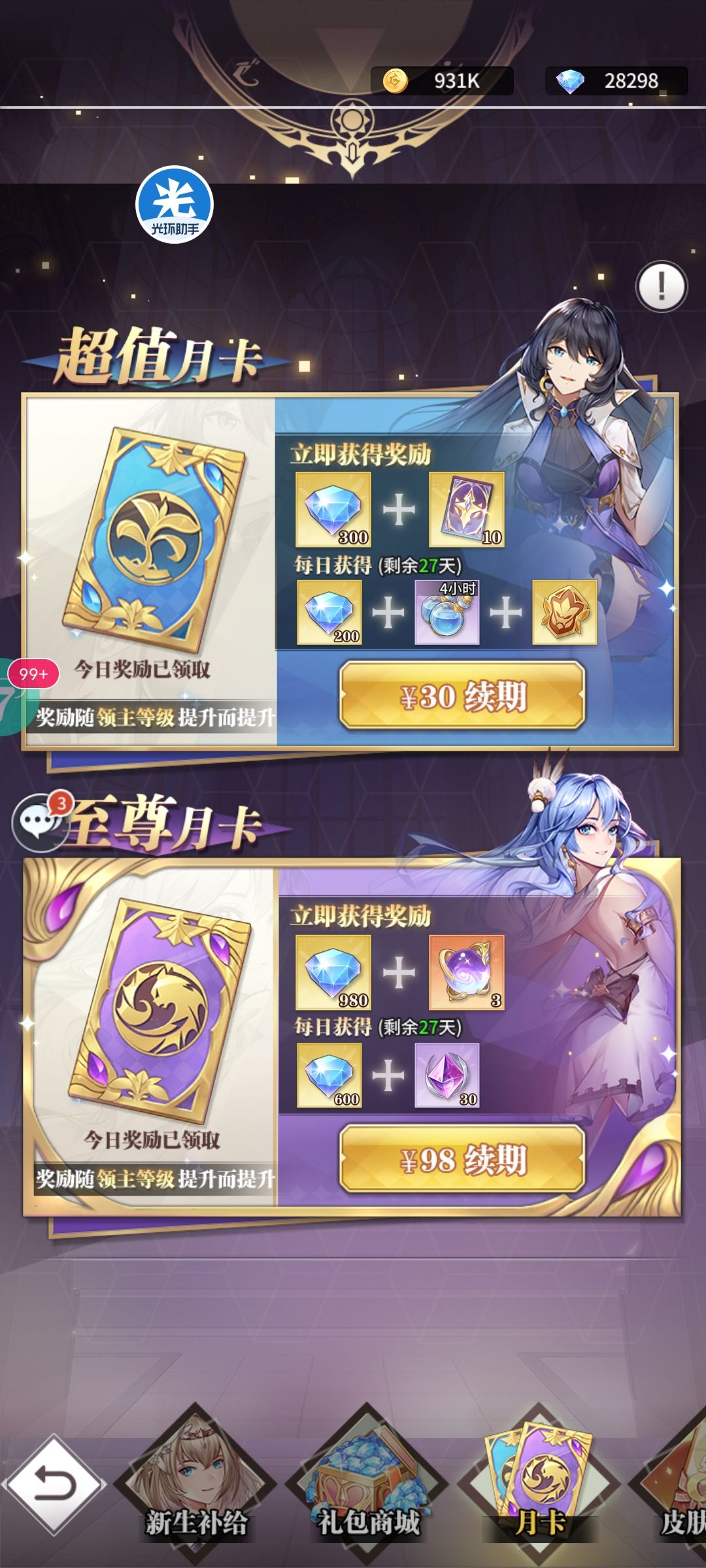 教一下大家怎么完整的白嫖新光暗(这是星期一第三天开的号)除了以下要花费钻石其余的都不用 1.开双月卡,第一天钻石用来抽卡,第二天就开始囤,抽卡30张高招抽一次,心愿挂白鹤二明心舞(大心愿根据你玩风土还是火队) 2.200级前每天加速两次(150钻和一次免费的),敏堂出紫以上就接,或者蓝色钻石进阶石也可以接,出橙红任务做完别领取(刷新大概率会出) 3.跑商:争取拿到第一可以开个小号每天早上八点起来上
