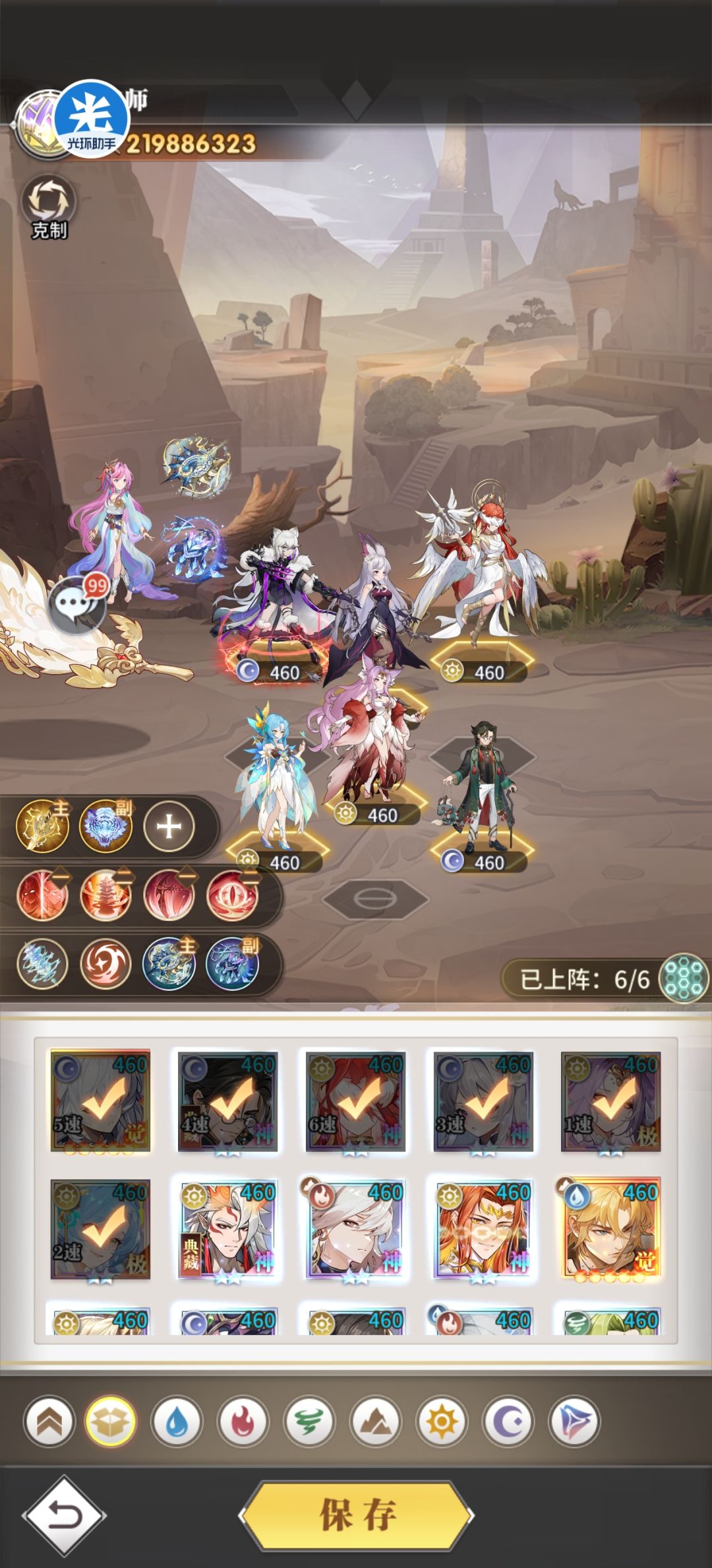 阵容:天使 光虎 毁灭 古榕 暗舞 混沌胡列娜 魂骨:如上图(左臂有条件换成爆怒副词条优选爆伤或者物伤,腿的话打暗猫换玄甲打天使光虎换成重甲即可) 命技-奥义-破极-小神技:输出猛击控制极速肉辅助极速或者骁勇-缺啥补啥-玩暗猫带破二其他的都带破三-小神技毁灭带速神暗猫光虎带天使其他的看情况 魂兽:输出带鹿防御鳞甲兽辅助控制带兽王 魂兽词条:输出13号位主属性速度副属性爆伤速度物伤或者法伤加攻击百分