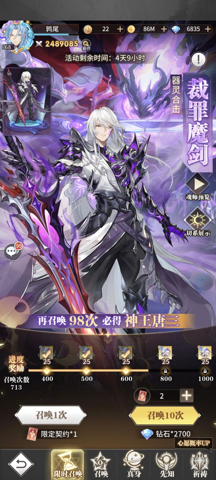 第二个六天来啦,对比上一个开了武魂真身的第六天进步明显目前战力256w,爬塔910层,今天出小店活动花了不少钻石现在还剩7.7w今天狗运出了俩心愿,配合自选直接把蛇龙和唐月华拉到了彩二,倒是没想到缺狗粮了,不然马红俊还能彩一提点战力新活动感觉挺夯的呀,现在已经合出来一片索引了,不知道第一件要补哪个神魂,希望能配合新服三十一天的神魂活动拿下一个本体上一个就是玩到开魂导器就转生了,今天大致看了