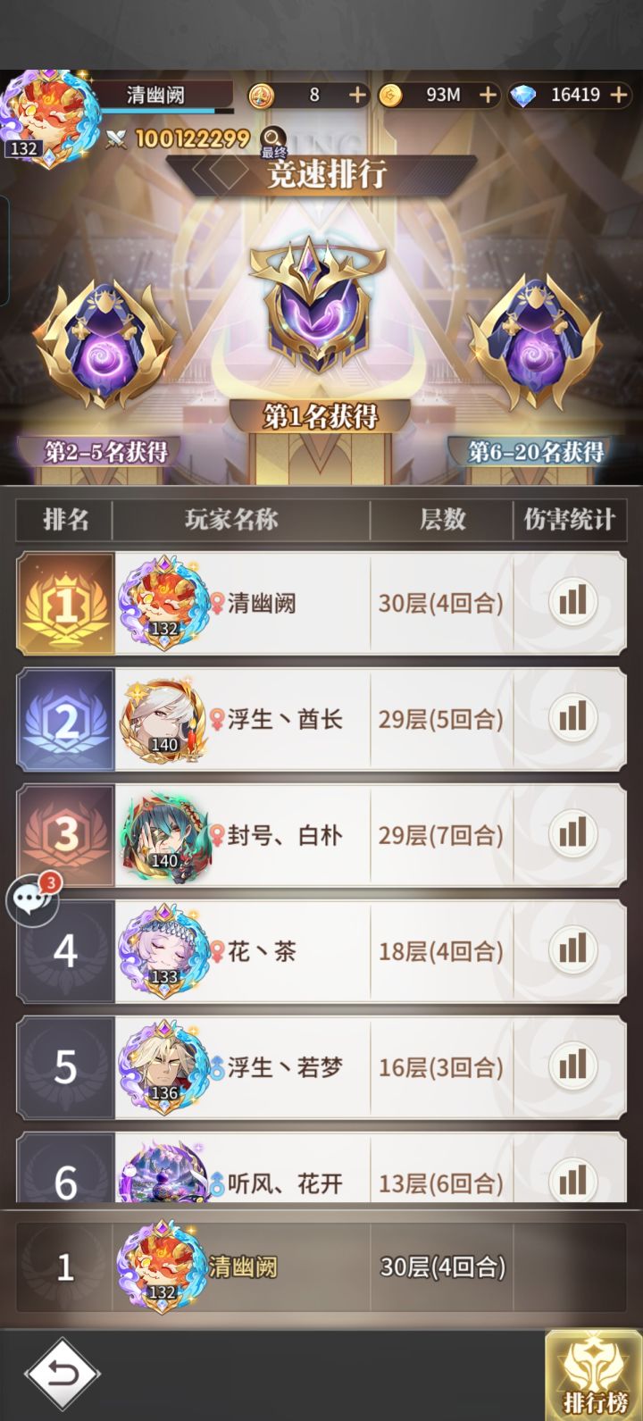 零氪打卡记录188天,终于白嫖到战力破亿,期间走了不少弯路,导致pvp只能向下越战,向上被虐。能够单刷百万年魂兽,深渊30层毕业,神三成神,正在慢慢拉罗刹,目前阵容全靠天卫在c。有条件的零氪或者微氪可以拉一下神三,强度还是在线,光三打辅助和普通攻击都很强。零氪能快速白嫖光暗卡成神的渠道就是年卡了。