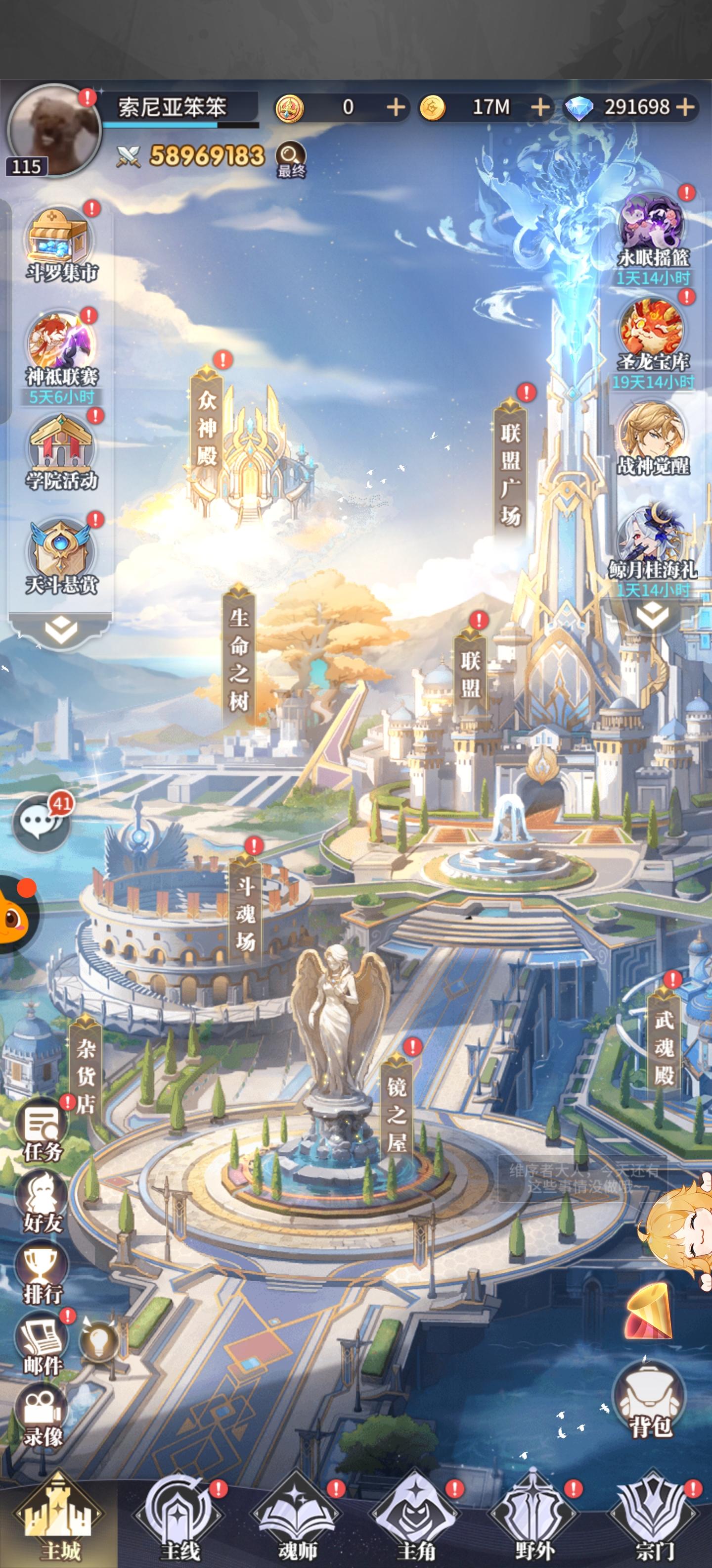 #斗罗大陆武魂觉醒 目标爬塔3000层接下来的规划魂师方面:双系唐月华成神、暗小舞成神、罗刹神成神、过年光暗双系成神(完成上述目标后一队为天使神、罗刹神、双系唐月华、暗小舞、过年光暗、魔晶王/天蛇);慢慢来比比东成神(爬塔用)魂骨方面:集齐六套十万年但强化石不够慢慢攒外附方面:慢慢洗联盟招人,活跃就行,超过三天没上线