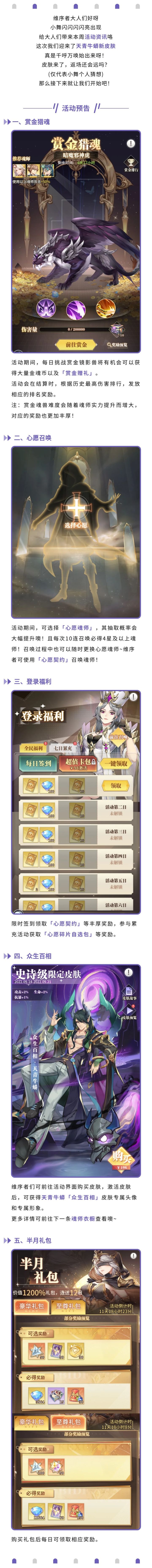 维序者大人们好呀!绯之焰华、烈火如歌似乎冰融城的冰也在慢慢融化呢!大人们这次的活动剧情玩到哪里来啦?小舞可是一点儿也没落下哟~好啦~此次出现主要是为了带给大家本周的活动预告与礼包码呐呐快来签收一下!活动预告一、地狱之路重置活动期间,地狱路玩法每日5:00重置一次!参与地狱路挑战获得奖励可在商店中兑换魂师镜灵等道具材料,期待维序者们的挑战! 二、限时回馈维序者大人可选择不同