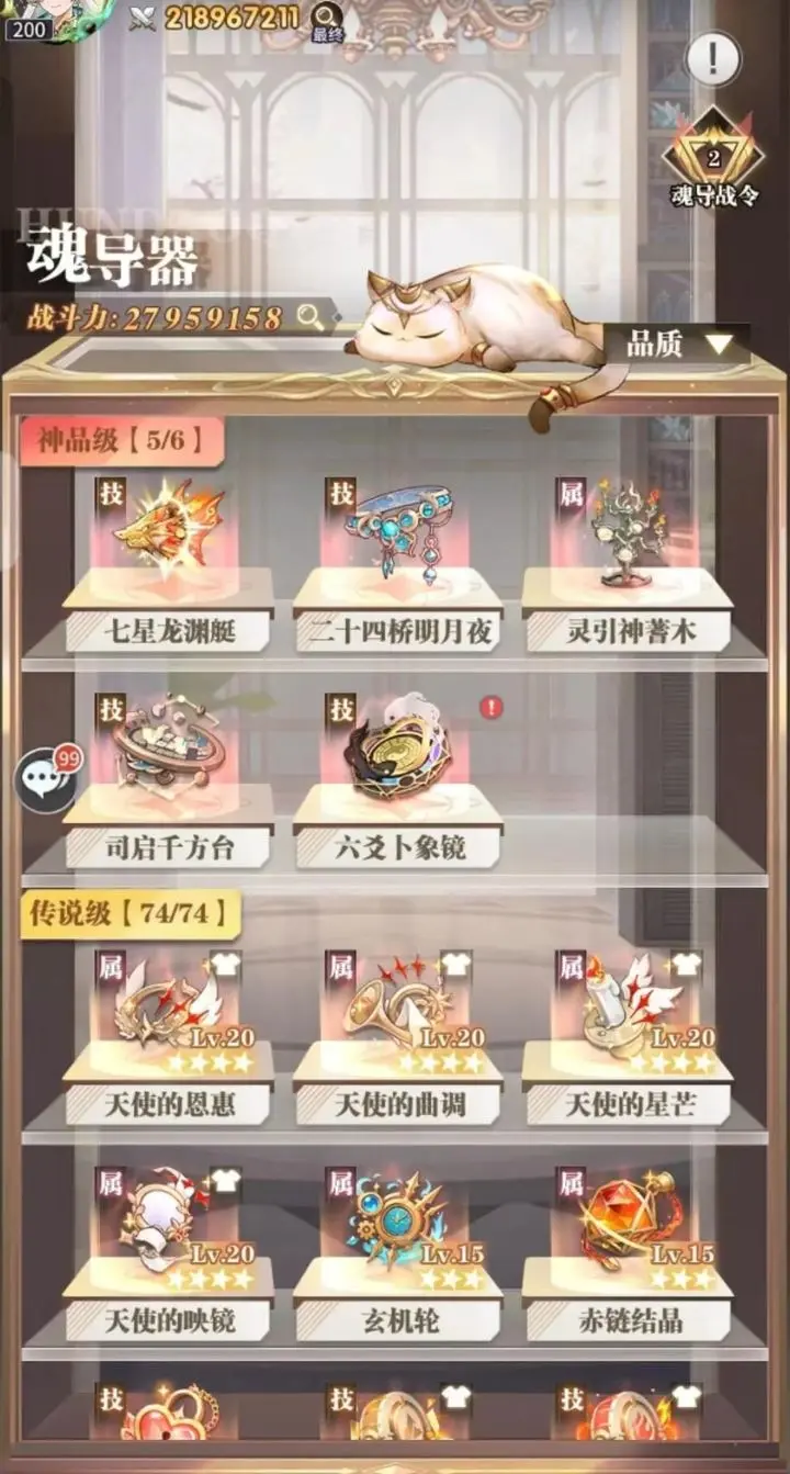 第二个六天来啦,对比上一个开了武魂真身的第六天进步明显目前战力256w,爬塔910层,今天出小店活动花了不少钻石现在还剩7.7w今天狗运出了俩心愿,配合自选直接把蛇龙和唐月华拉到了彩二,倒是没想到缺狗粮了,不然马红俊还能彩一提点战力新活动感觉挺夯的呀,现在已经合出来一片索引了,不知道第一件要补哪个神魂,希望能配合新服三十一天的神魂活动拿下一个本体上一个就是玩到开魂导器就转生了,今天大致看了