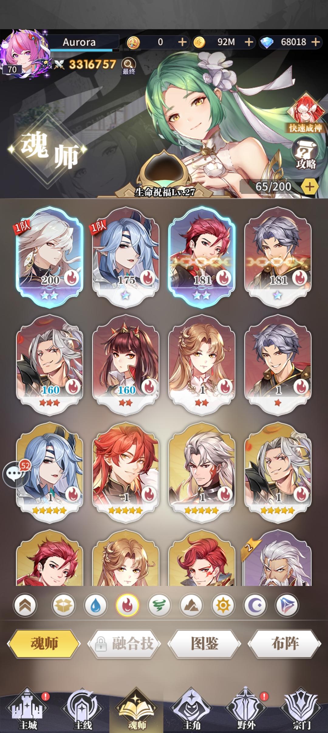 因为版本的变更,重新推荐一下,再次声明熬死大佬你就是大佬,只要玩的久,人人都可以当大佬,理智消费!(本次针对新服战神易获取)开局建议(土战神风土单核,更适合平民)如果不打算氪很多,建议每天创一个号,然后第一天一直抽卡,拿砖石抽,抽到好的魂师再开局,这样会相对而言舒服点。个人建议抽到战神(战神戴沐白,后面皆简称战神)、生命(生命女神)、二明(泰坦巨猿)、凤凰(凤凰马红俊)、荣荣(宁荣荣)或者其他
