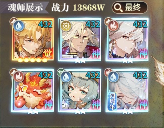 没错,又又是我,今天给大家带来一手新手入门攻略,跟着我走,让大伙不再走弯路。本攻略比较驳杂,但事无巨细。希望各位萌新们耐心看完。1.魂师开局抽什么首先呢第一发十连必出欧亚,所以有耐心刷开局的朋友需要从第二次十连刷起,当你抽到海神唐三,泰坦巨猿,白鹤,千寻疾的时候,就可以果断开局了。四位四系核心魂师如下图:2.主角武魂选什么首推蓝银草,蓝银草作为主角唯一的控制武魂,重要性远远大于其他武魂,主