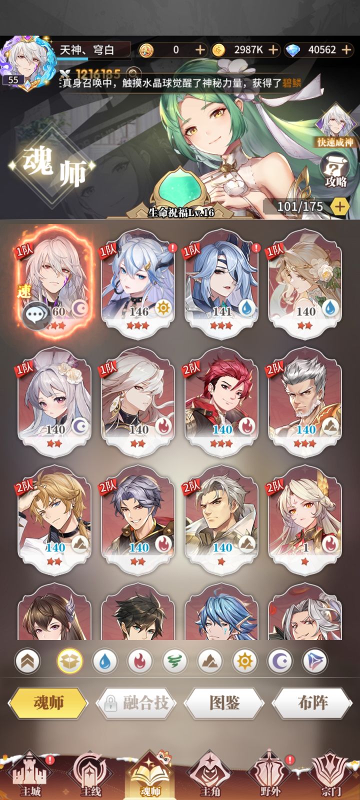 零氪打卡记录188天,终于白嫖到战力破亿,期间走了不少弯路,导致pvp只能向下越战,向上被虐。能够单刷百万年魂兽,深渊30层毕业,神三成神,正在慢慢拉罗刹,目前阵容全靠天卫在c。有条件的零氪或者微氪可以拉一下神三,强度还是在线,光三打辅助和普通攻击都很强。零氪能快速白嫖光暗卡成神的渠道就是年卡了。