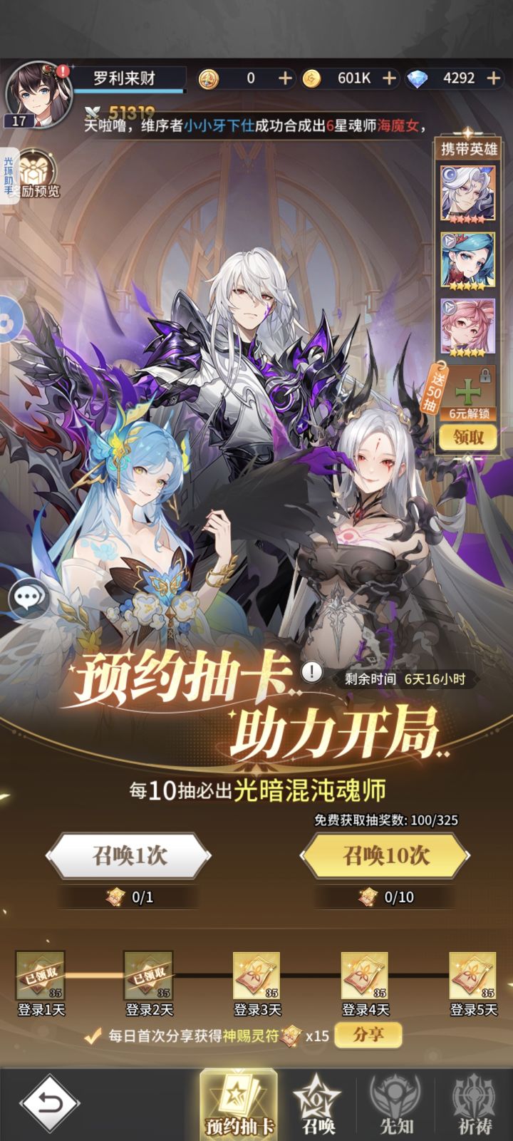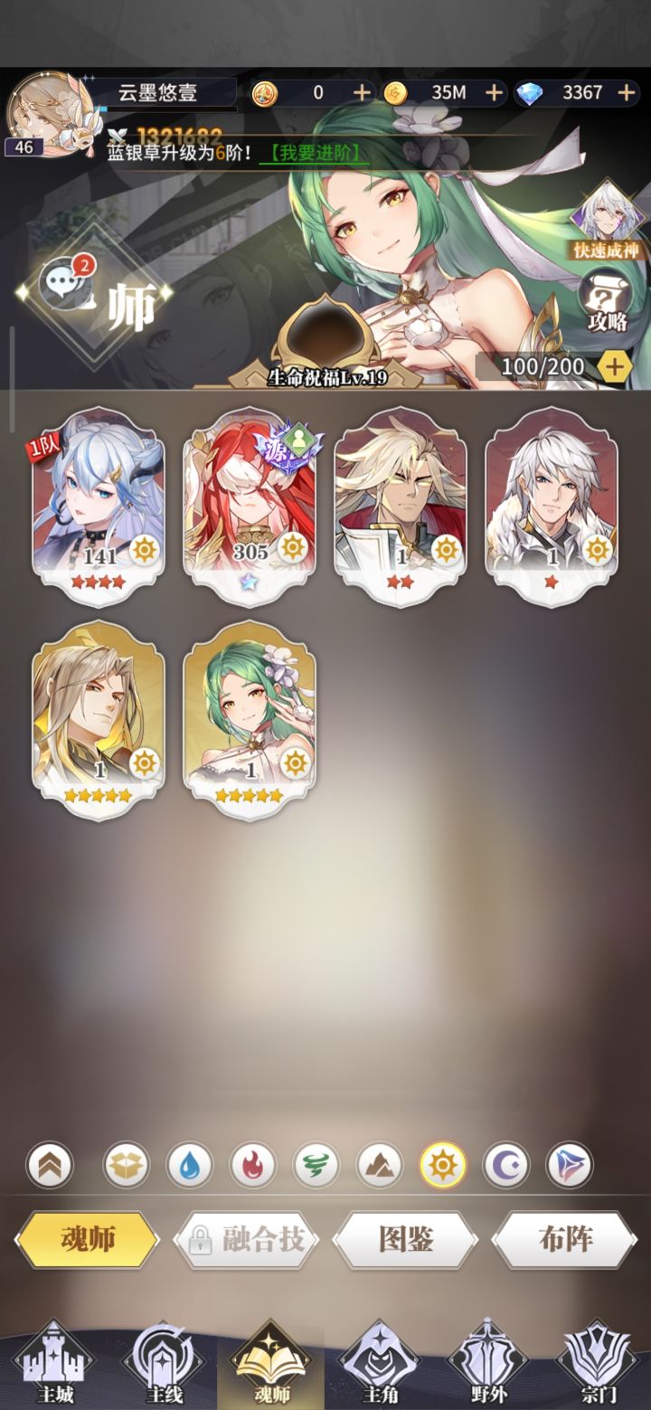 第二个六天来啦,对比上一个开了武魂真身的第六天进步明显目前战力256w,爬塔910层,今天出小店活动花了不少钻石现在还剩7.7w今天狗运出了俩心愿,配合自选直接把蛇龙和唐月华拉到了彩二,倒是没想到缺狗粮了,不然马红俊还能彩一提点战力新活动感觉挺夯的呀,现在已经合出来一片索引了,不知道第一件要补哪个神魂,希望能配合新服三十一天的神魂活动拿下一个本体上一个就是玩到开魂导器就转生了,今天大致看了