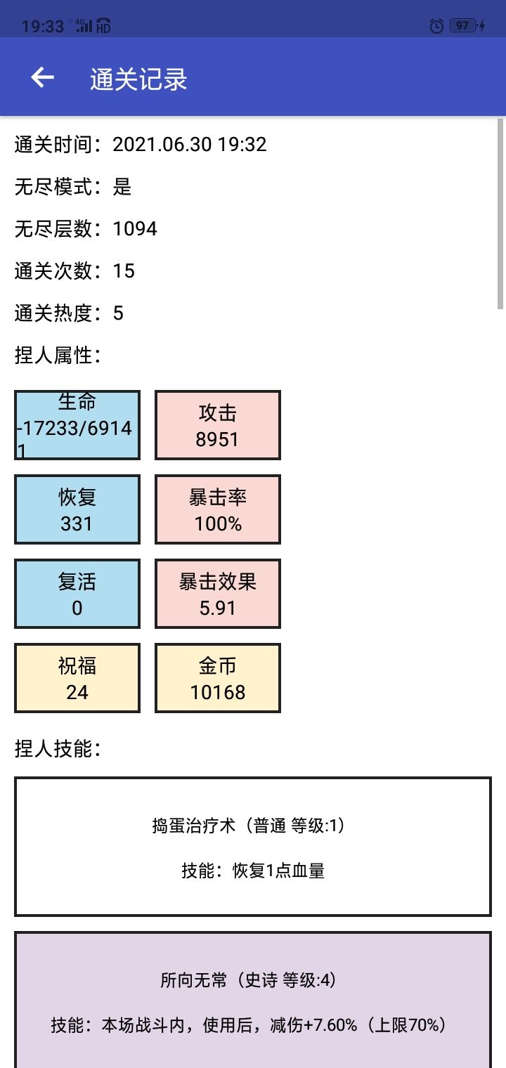 女娲捏人,无尽模式1094层新记录