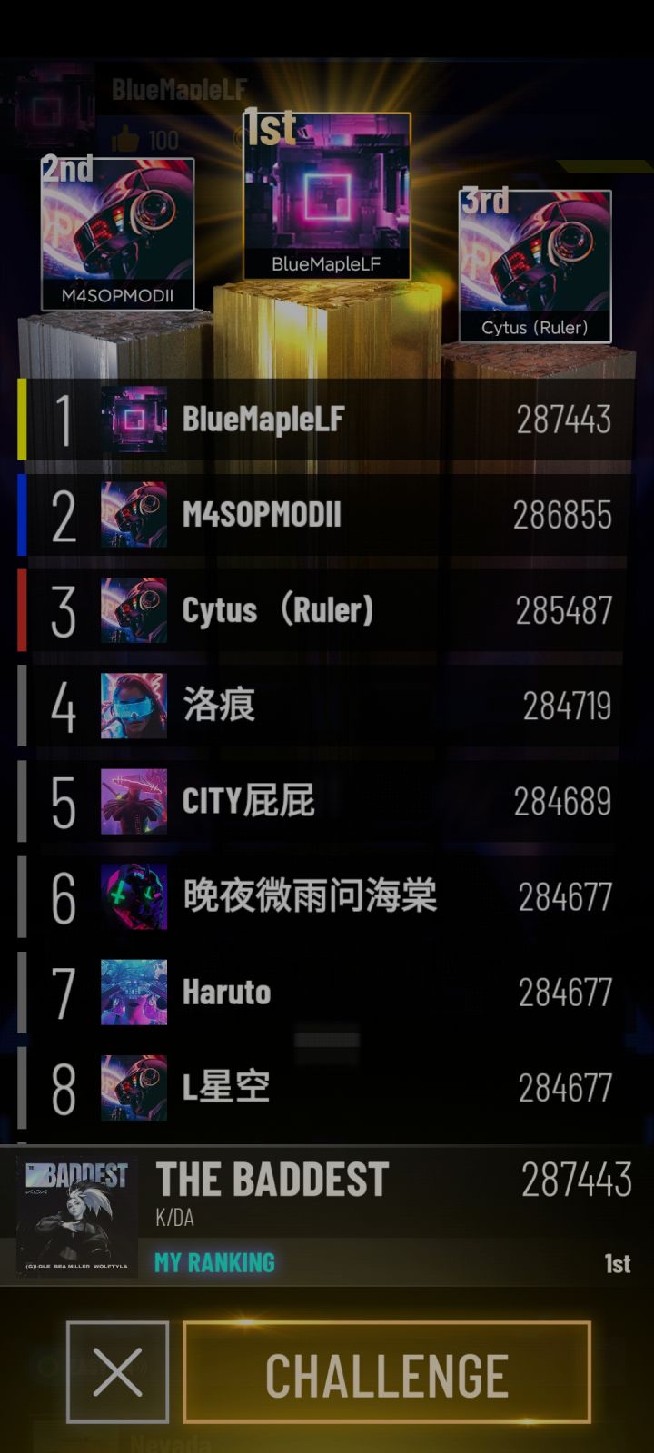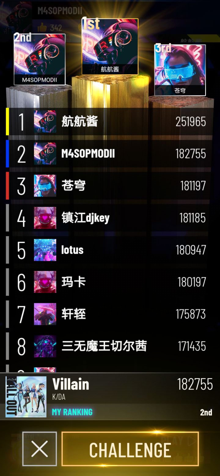 新版本逛逛,发现广告栏换了新的歌曲,就随便打了下....怎么就登榜了,还是榜首....害怕.jpg然后觉得不对劲,又打了一次。原来你游大p中套了小p、中p、大p、特大p啊后面想着既然登榜了也不能丢人,就练了会,但还是没超过之前的分数。rmmm没办法咯~等大佬把我撵下去。