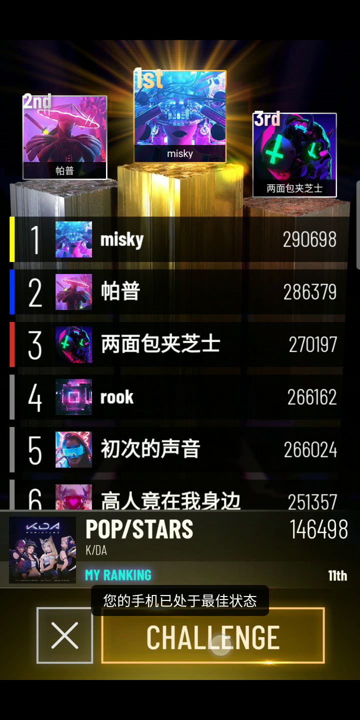没竞技没排行,难易度照节奏大师差远了。。期待类似劲乐团那样的手游。