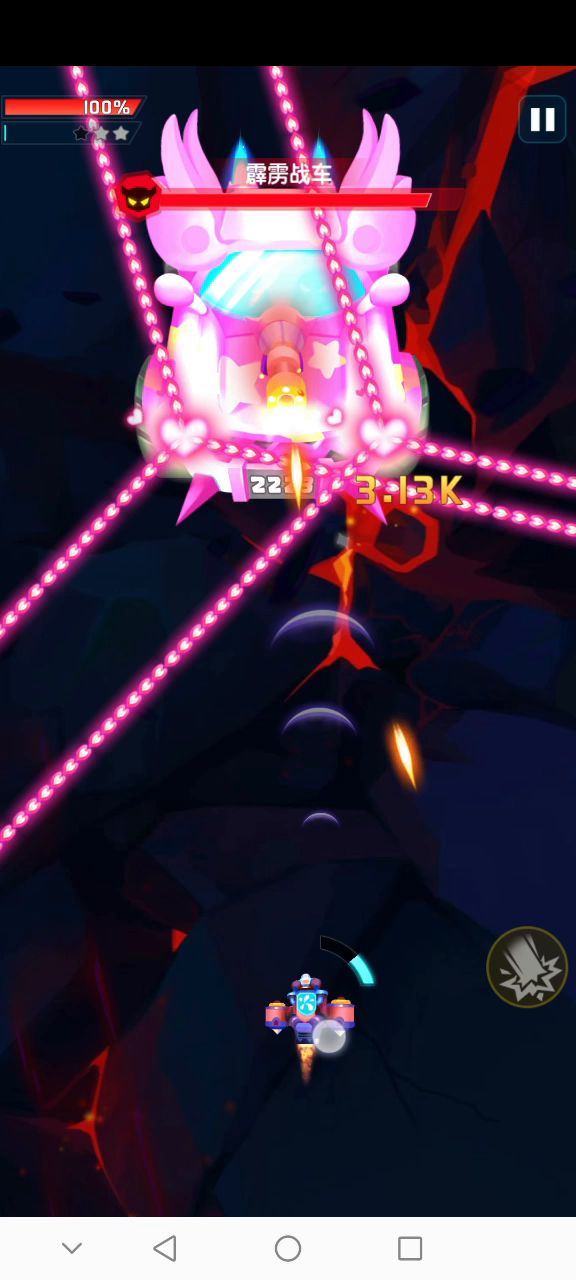 开局走到右上角等归位,快速打两刀伤害是常规打法,这关可以不用。说不定可以持续在底下输出会更容易拿节奏。 主要打法是在第一轮扫射的时候保证血量不要过低(可以看那个“战”的位置)之后暴力输出收掉就好,沉底是为了让子弹飞一会(诶嘿)