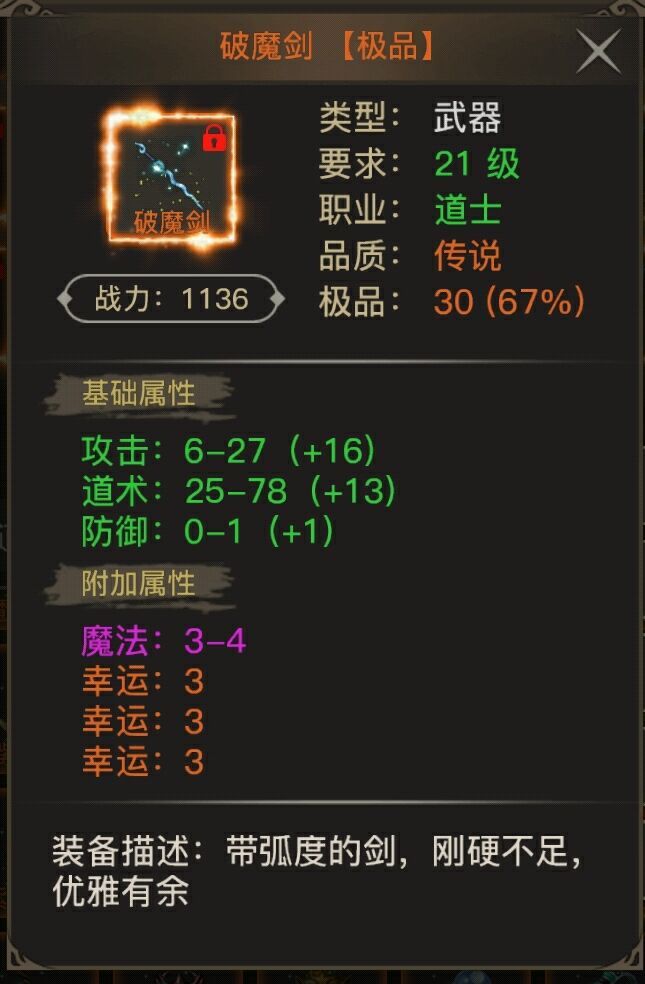 我玩道士,但是觉得道士越来越疲软了,不是因为道士不强,而是因为道士装备的的门槛太高了,上周我竞技场第一,这周只能勉强维持在前三,为什么?法师战士装备跟着等级换,不强求全一,武器项链跟着等级幸运上来就行,其他的位子全一随缘,就能保证战斗力的稳固进化。而道士。。。。。。洗了20的洗40,40的到现在都没洗几件,就我自己而言,实际战斗力居然比上周差,因为武器项链套的太多了,为了洗更高级的不得不把本来属性很好的武器项链卖掉,结果不进反退。。。。之前是特定的两个人有几率输,现在是谁都能输。。