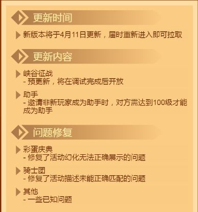 本文首发【疯狂礼品码】公众号,未经授权禁止“抄袭文章”转载至其它平台。大家下午好,我是小编无敌暴龙。疯狂骑士团今天再次迎来更新,更新速度杠杠的!那接下来我们一起看看都更新了哪些内容吧~ 01 更新汇总 详情 本次更新,直接更新的内容不多,但是内容十分重要,涉及到疯狂骑士团的全新玩法——峡谷征战。相信各位骑士们对新玩法也期待很久了,终于等来了好消息,还修复了很多游戏内的问题。具体内容我们一起看看吧~