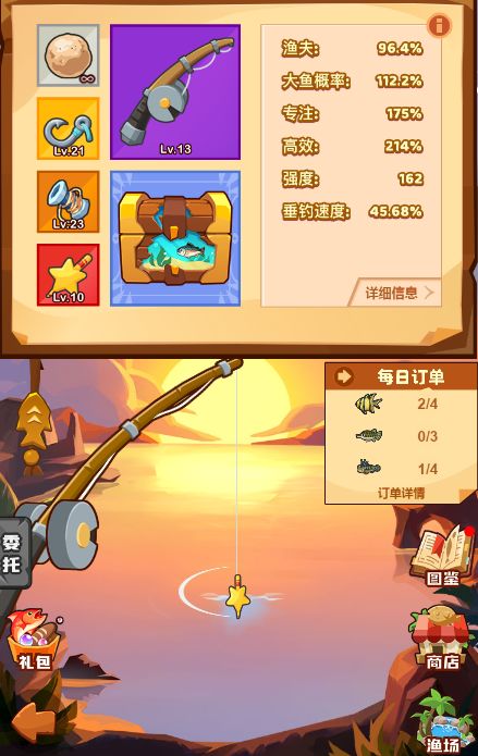 本文首发【疯狂攻略组】公众号,未经授权禁止“抄袭文章”转载至其它平台。 哈喽,大家好,我是你们的小编半夏,相信很多小伙伴看到标题就应该猜到这一期小编要给大家讲的是什么样的内容了,今天小编将给大家介绍如何购买钓鱼礼包最划算,具体详细内容跟着小编一起来看看吧。 01 钓鱼礼包 详情 最近有很多小伙伴和小编讨论的时候说现在开新图太难了,而且鱼钩和鱼线等级又跟不上,常常有出现跑鱼断线的情况,想要升级鱼线和