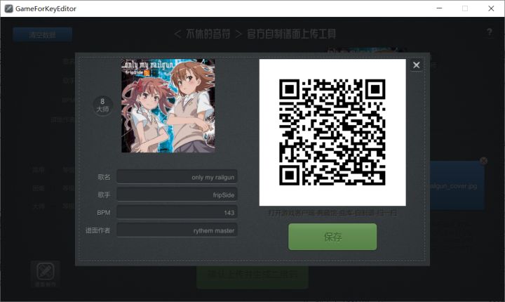 这两天闲着没事戳戳,发现这游戏居然有谱曲定制功能而且制作还挺简单的~首先要下载自制谱软件,这软件是游戏里就有链接的在图示位置点击下发向上箭头按钮即可复制链接至电脑下载软件软件下载好后,就能上传文件了,照着填就行了,基本都是傻瓜式操作,但是重点来了,bpm不能乱填,歌曲的bpm有相关的软件可以直接查看,然后就会生成一个二维码,在游戏内点击下方扫一扫,就可录入你上传的谱面。我成功把我最喜欢