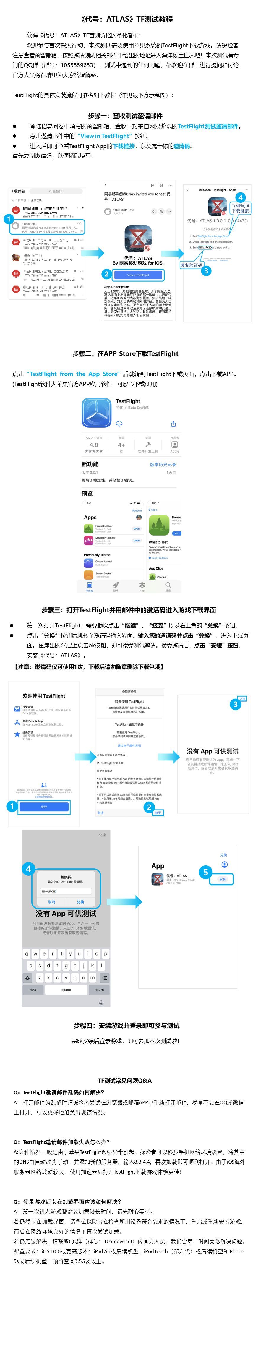 距离#代号ATLAS#TestFlight首测还有不到十分钟!预下载已开启! 海面升起,陆地沉没 是天灾,更是人祸 生命源于海,终归于海 是未知,也是未来 海洋废土世界的神秘面纱即将揭开! 【测试信息】 测试时间:1月30日上午11:30——2月1日中午12:00 测试性质:删档不计费测试 测试平台:iOS TestFlight(使用指引详见图片) 下载方式:测试邀请邮件已通过短信形式发放,请注意