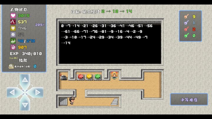 合着4把钥匙攒到最后一点用都没有,平添难度,如果中途救公主就直接通关了,如果打到魔王公主就直接出现,不需要钥匙救,那我费这么大劲留着4把红钥匙干嘛?说一下bug,魔王打倒后在山顶仍旧可以使用传送,传送到公主那层去玩双飞